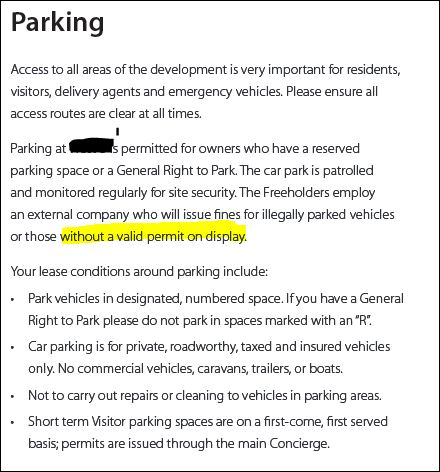 When I spoke to the team at front desk (ie they handle general parcel deliveries, security etc), they indicated I might have an incorrect permit sticker.