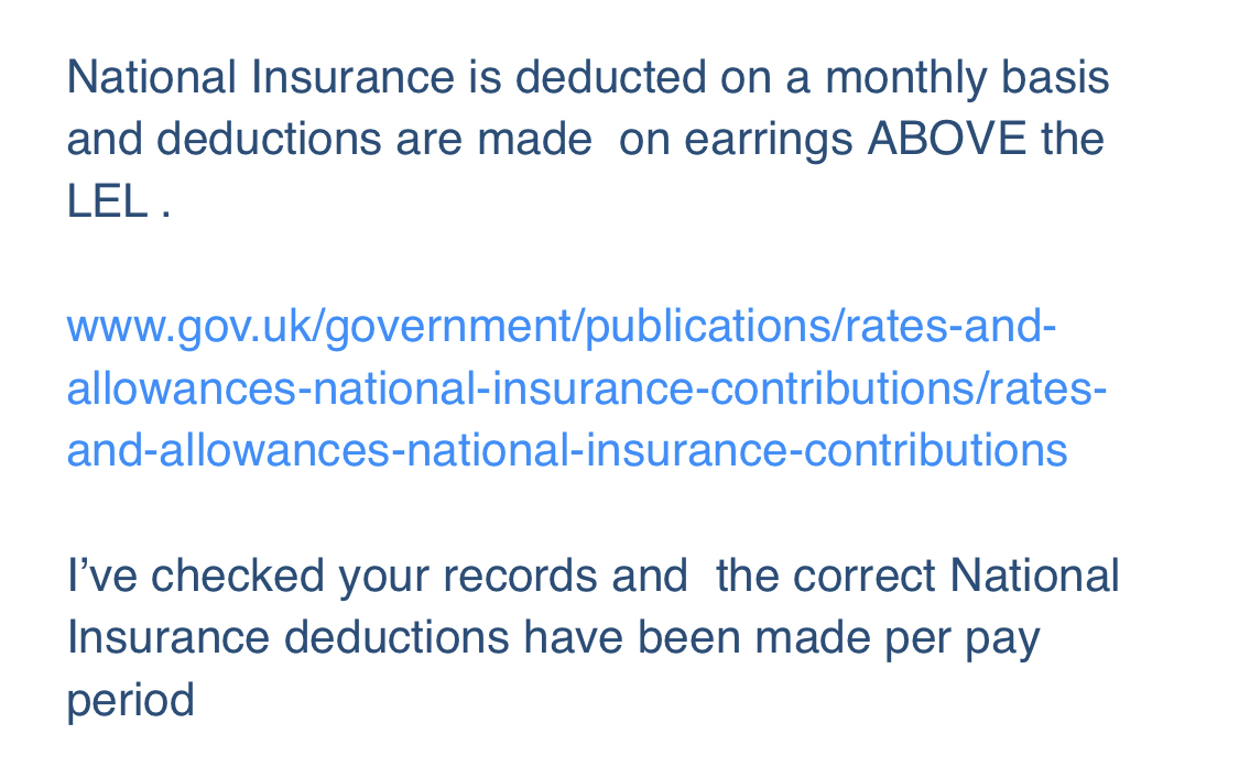 My wife only started working in Nov 2020. Her gross pay on her 2020/21 P60 was £11,444.32. She paid no income tax, but paid £898 in National Insurance. If you put the gross salary into an online take home pay calculator it says £225 should have been deducted for NI. She queried it with Payroll and they say it’s correct as they work in monthly deductions (see below). I can’t make sense of it as I presumed NI is paid on anything above the Primary Threshold?