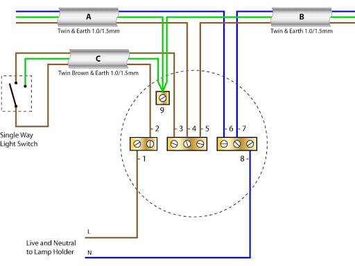 In this country we use twin brown for switch drops (and previously twin red). It's a poor practice in my opinion how England uses brown and blue for these.