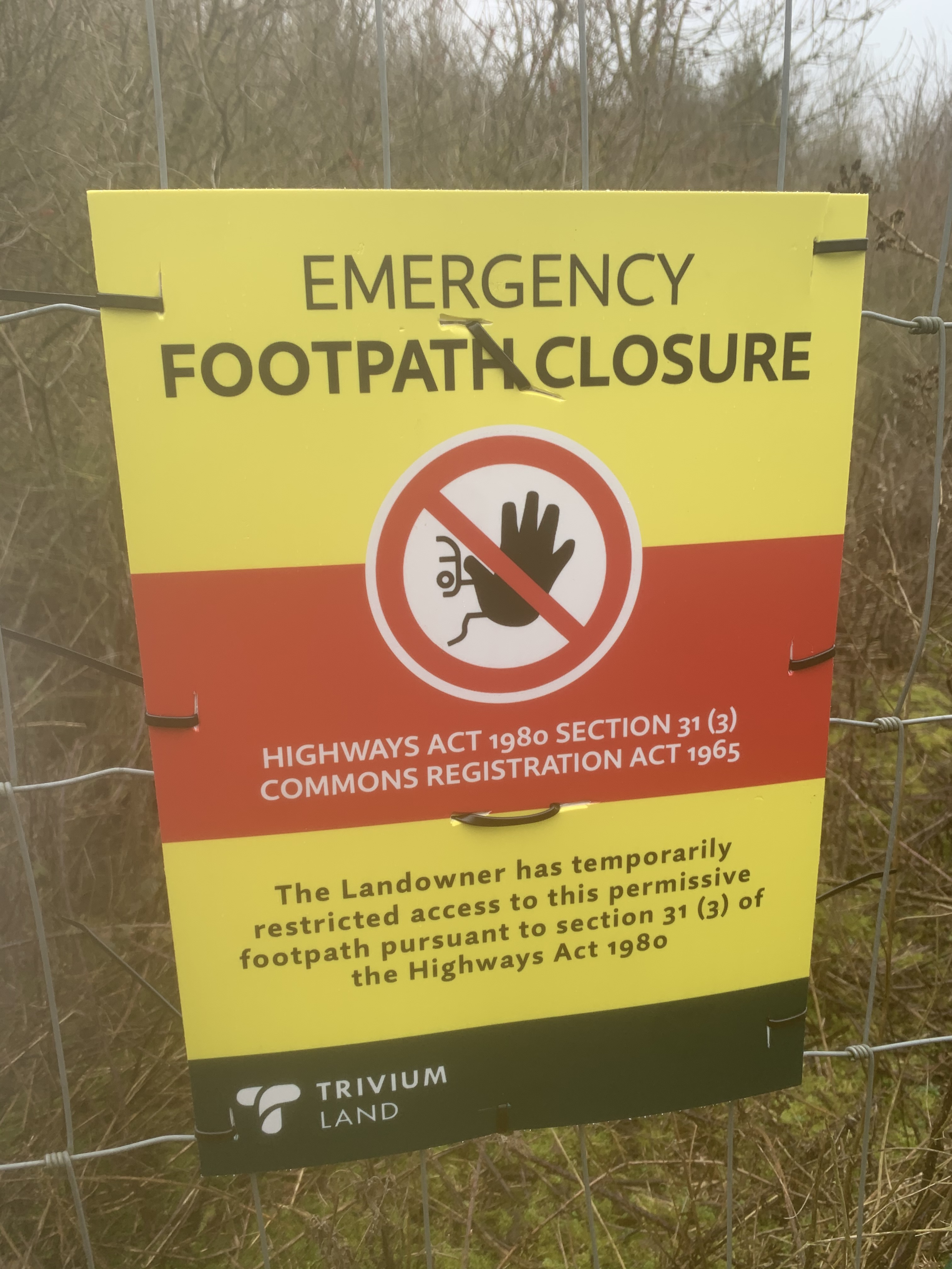 My thoughts exactly. I have contacted the council PROW Officer regarding it.IvanOpinion said:Sounds like they don't want a right of way on their land and are issuing notice of that intent - although it does use the word 'temporarily'0 -