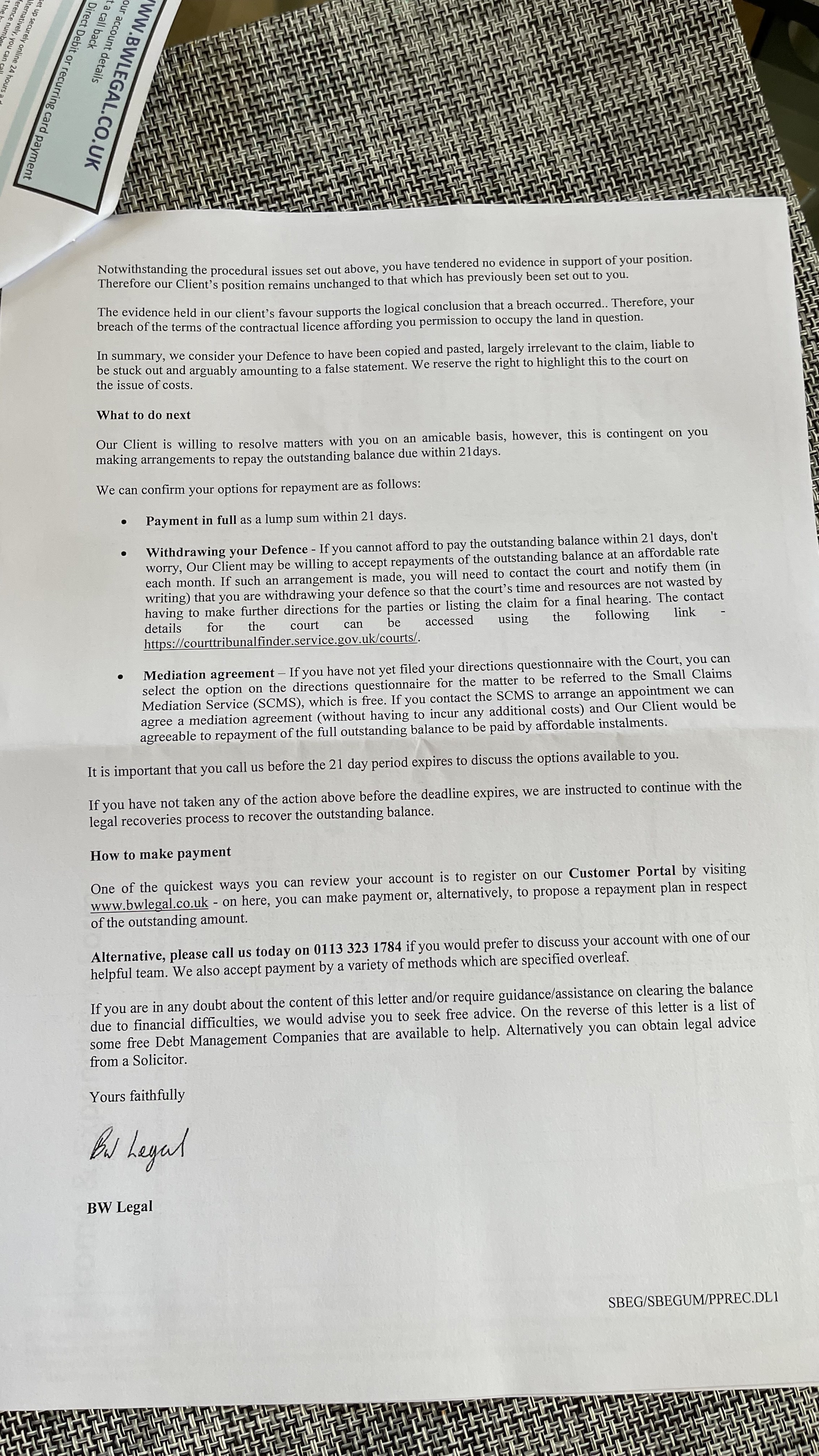 🤣Coupon-mad said:What intimidating twaddle, trying to get people to withdraw their defence because BW Legal (but no Judge ever) thinks it is a 'false statement'.