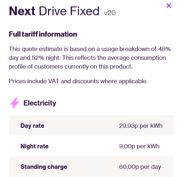 Yes, now EON Next's website is playing ball I see that, despite claiming on one page that Next Drive is 9.5p/kWh off-peak, v17 is back to ~6p.