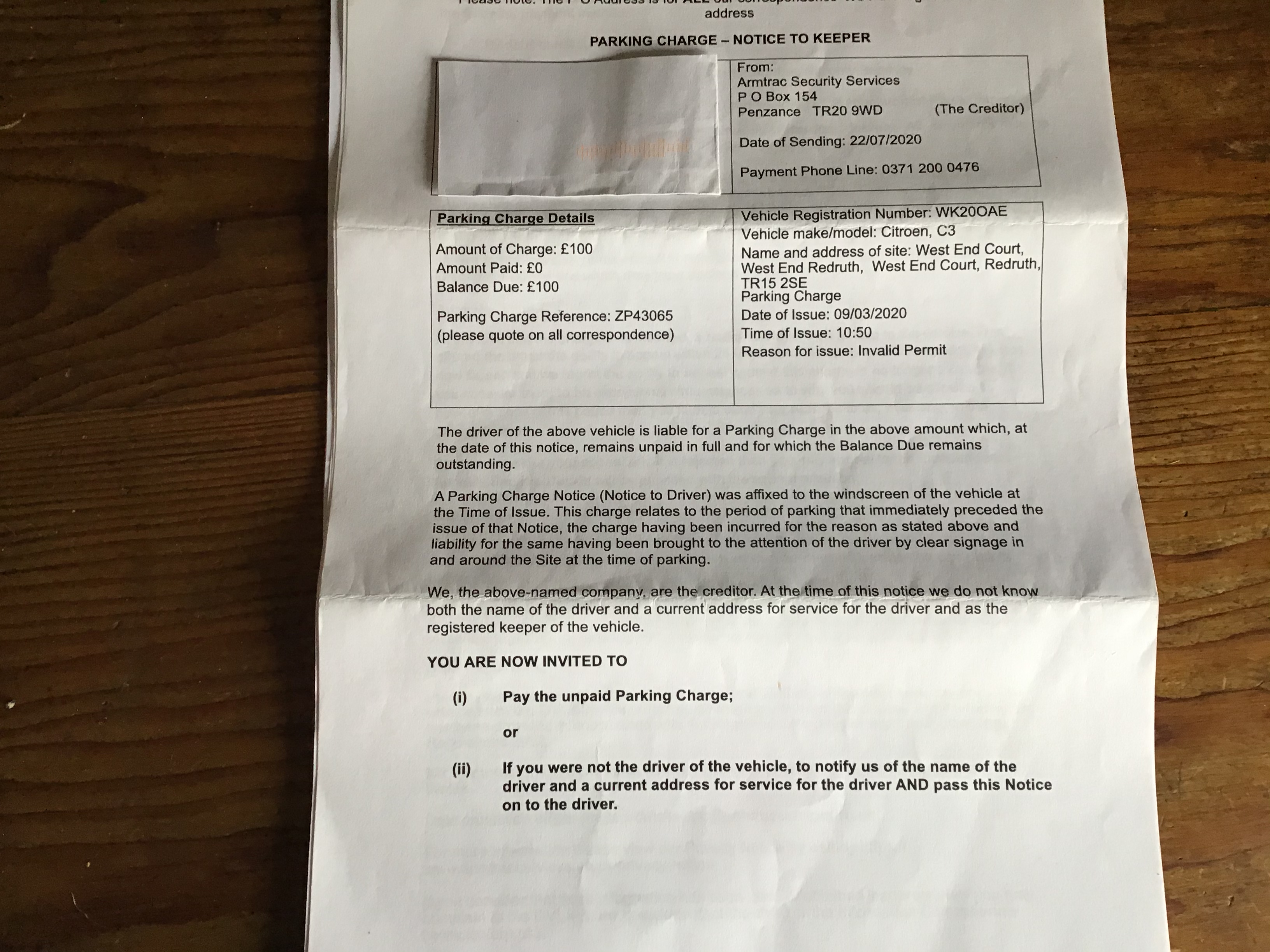 no contact has been made to identify the driver to amtrac services. On the 22/07/2020 I received a notice to keeper inviting me to either pay the £100 charge or to pass it on to the driver. Which I did neither followed by a follow up letter dated 11/08/2020 which stated final letter before debt recovery or court action. On the 4/09/2020 I received my first letter from bw legal with the usual £100 charge plus £60 debt recovery fee and offering me a pre approved instalment plan, this was the first of many generic letters from bw