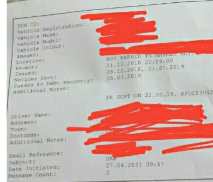 So from this I am assuming by these dates that the NTK (to lease company) was sent on the 28/12, with the notice to hirer on 21/01. I recall this being for the full amount I.e the 100 pounds because I hadn't paid in 14 days ( how could I have if I hadn't been the registered keeper?) You can see from there that they only sent me one notice before sending it to the debt collection company on the 15/03.