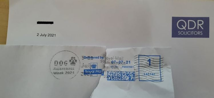 I received a letter from QDR solicitors today (8/07). The letter is dated for the 2/07/2021 but the envelope says it was sent on the 7/07/21.