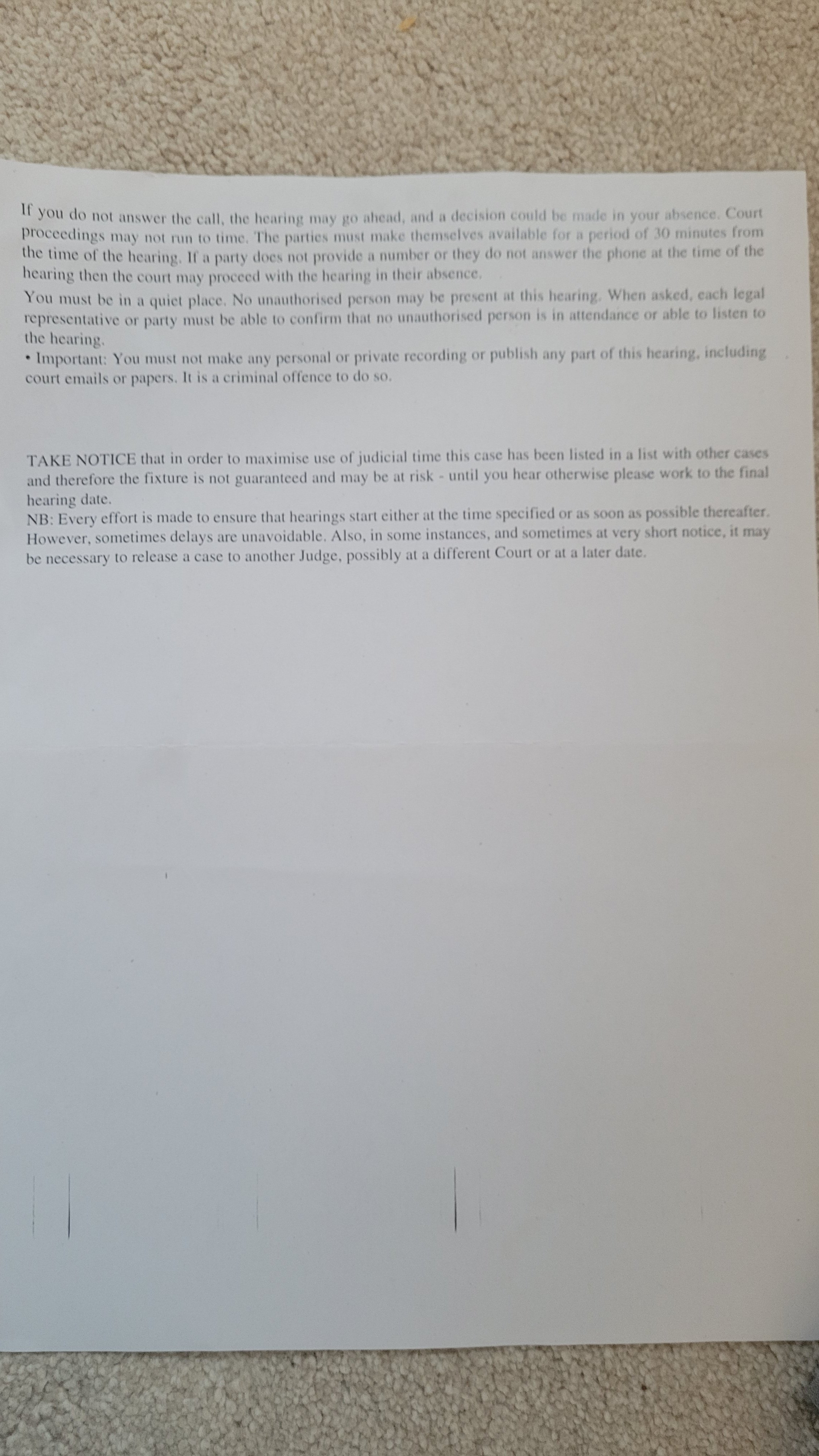 By C do you mean the court has sent me a big bundle? No they haven't. It is just two pages talking about what a telephone hearing is and when it is. Here is the second page (first page above).