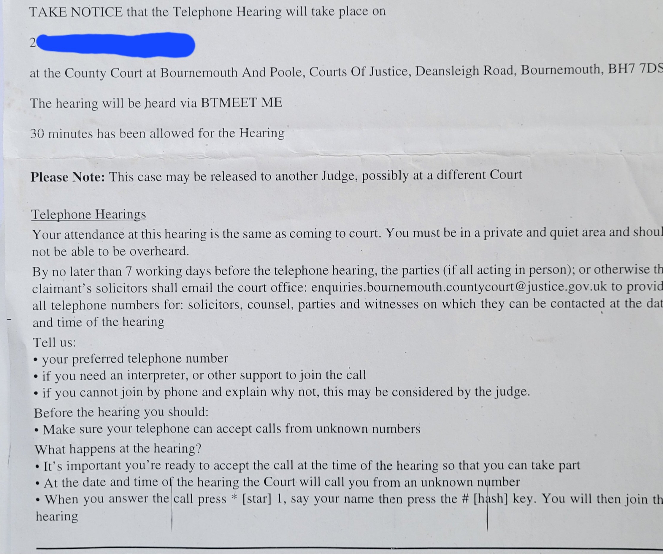 Nearly 2 years later and I have recevied a new County court hearing for the 28th of April 2023.