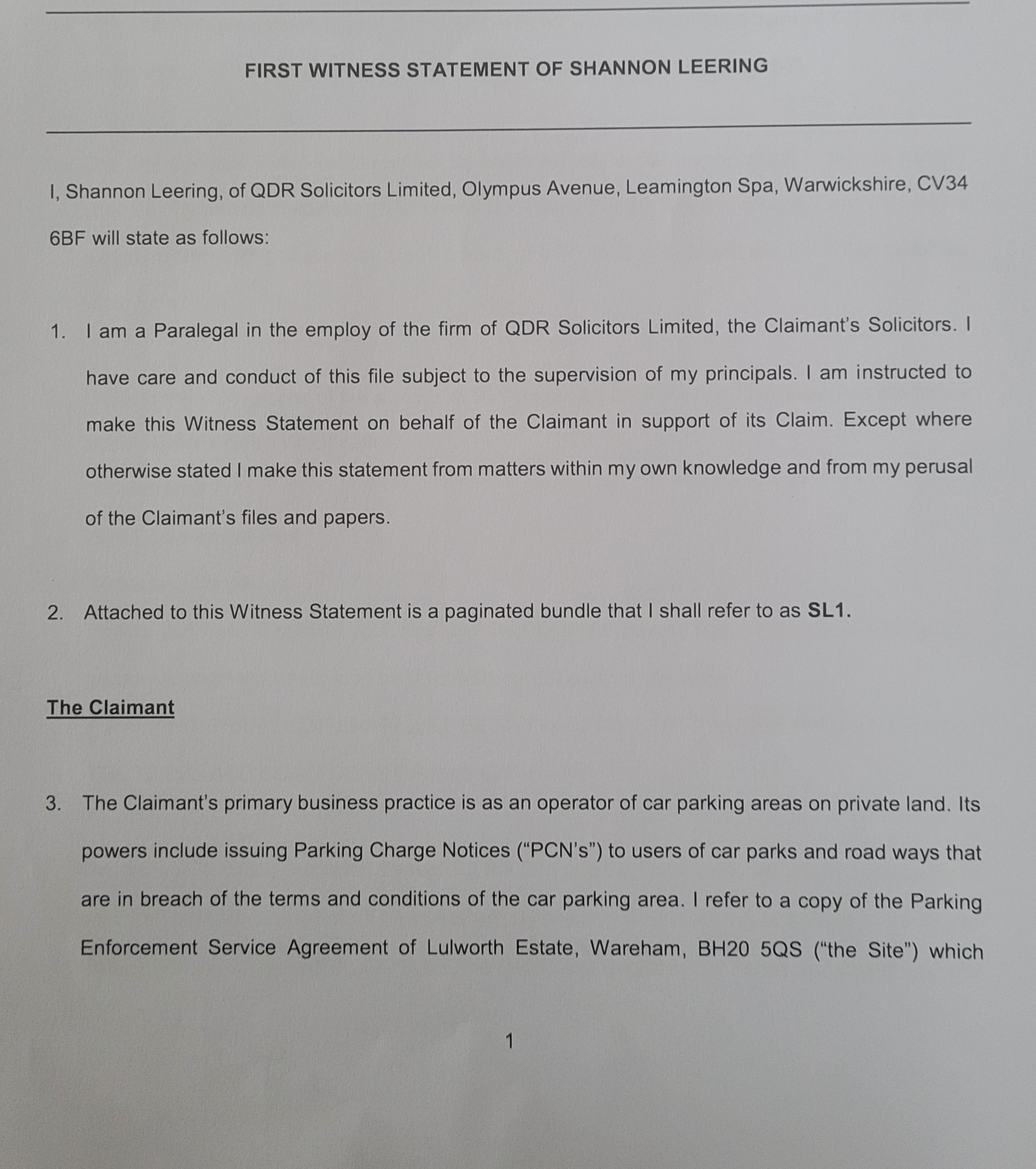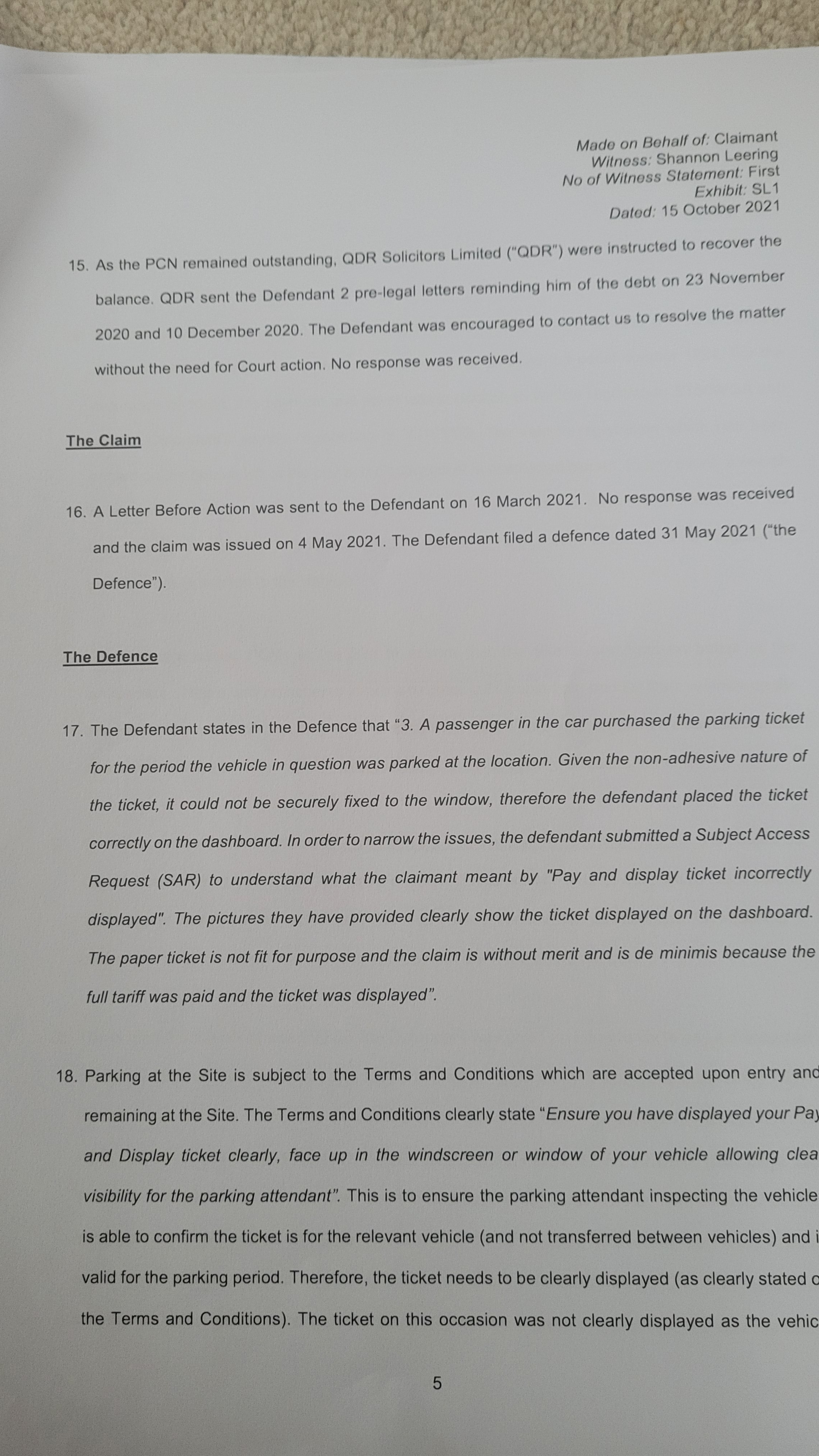 County Court Claim - QDR Solicitors (NSGL Parking LTD)
