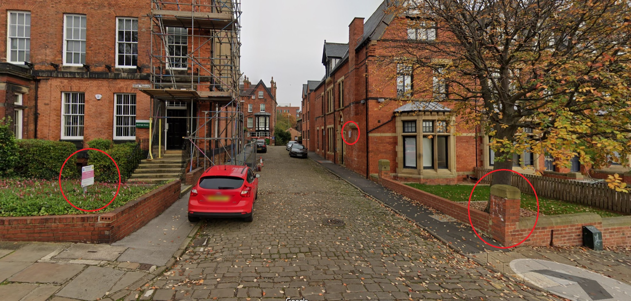 THE TICKETS: I live in my partner's flat in the city centre in Leeds, and park my car either 5-10 minutes away where there are two small roads with free street parking, or else 20 minutes away where there's a significant amount of free street parking. In February and March 2021, the University of Leeds allowed all students to park on campus for free at any time of day - and I was eligible for this as my student status had not yet lapsed while I continued to teach for the university. Nearly every day during these two months, I parked my car where the red car (not mine) is parked in the screenshot below - the left-hand side of a dead-end street about 5 minutes from where I live. This street is listed on the university's website as university-owned parking, and the sign on the left-hand side (circled in red) shows that it's university parking.