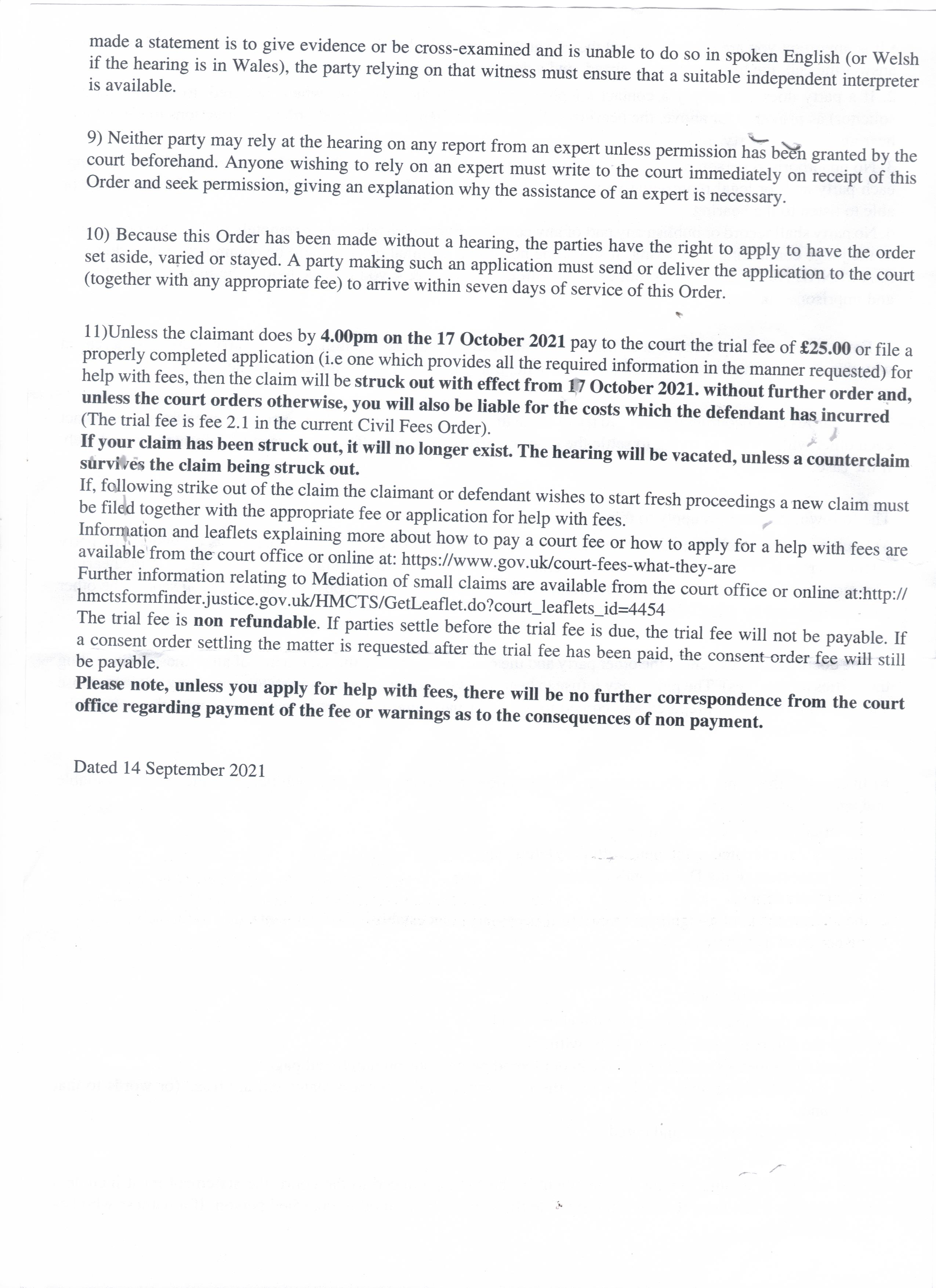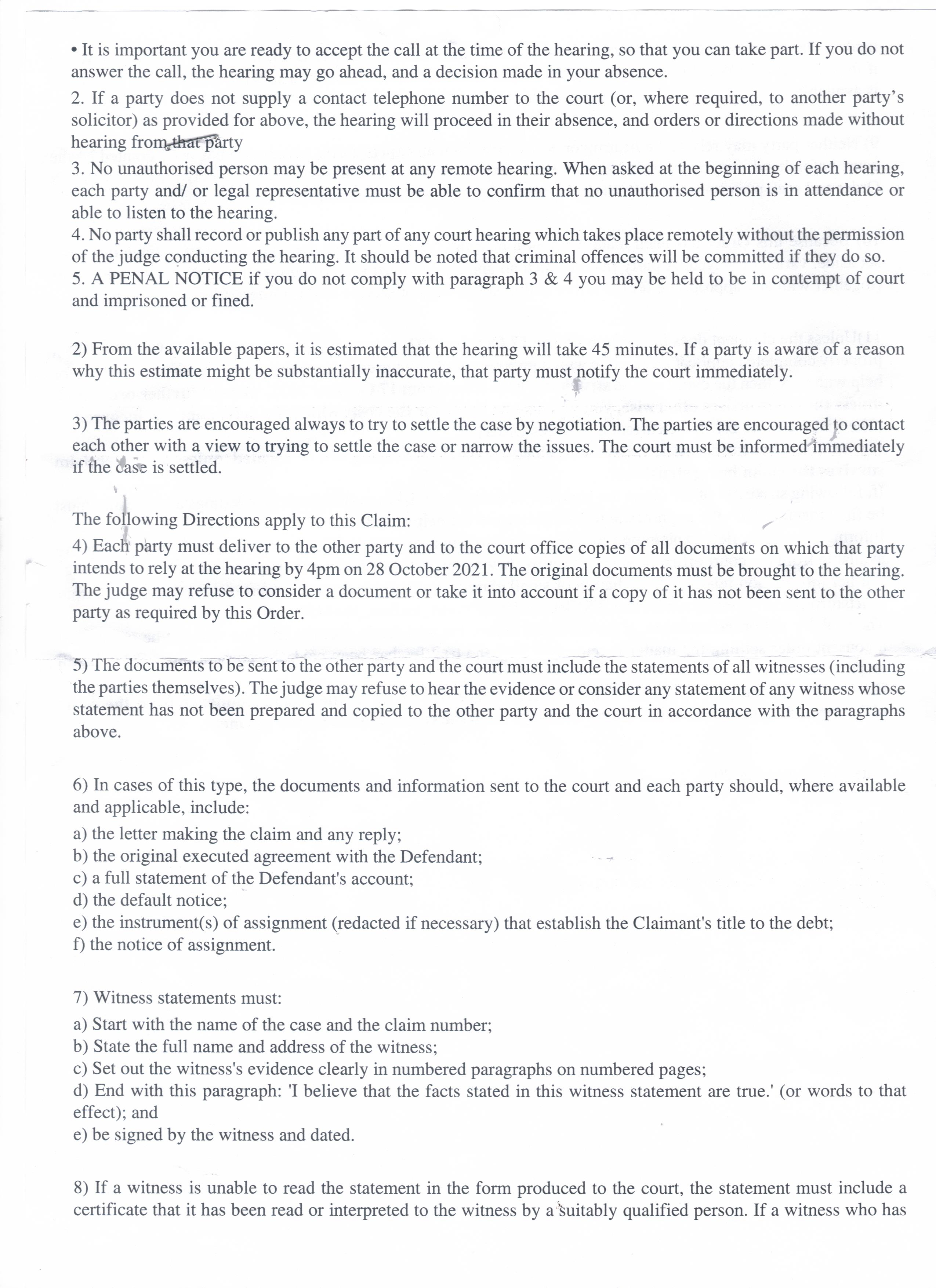 Hello again,Just latest letter i have been given this evening, and trimmed to suit with name etc removed. Looks like more paperwork for me once again. I did speak with a nice Lady at MCOL yesterday, who did confirm that the small/initial 200 word boxed?? defense i did on the 28th was rejected as it was minutes late, which was quite fortuitous, as thankfully now the full 5 page version will be used from next day, which was as it should be, a signed statement of fact.