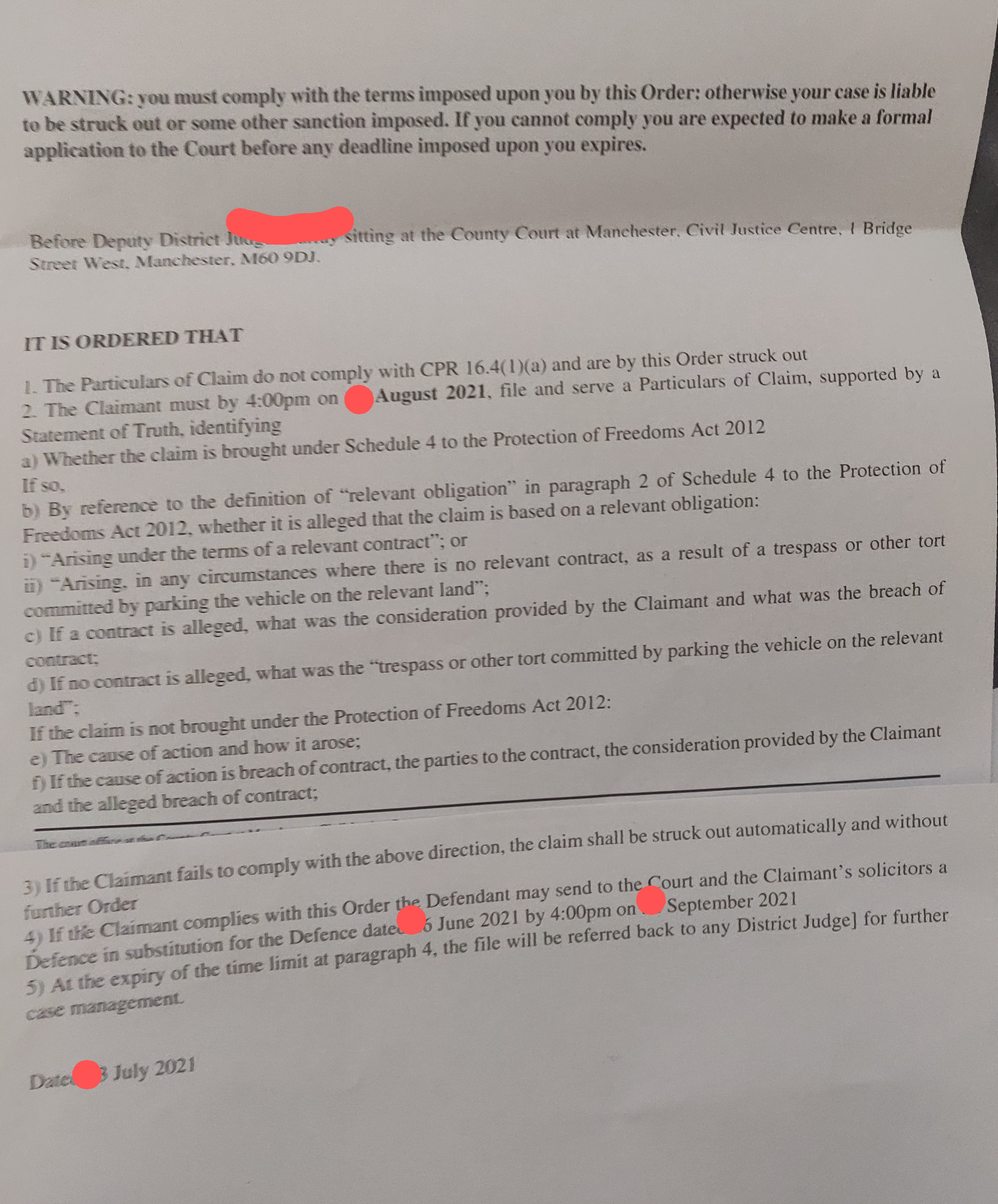 Letter was received in July, general form of judgement, from county court (pic included) asking the claimant to comply with CPR 16.4 (1)(a)