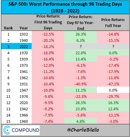 After this weeks earnings reports from a few in the retail sector profits are under pressure. So it's now inflation , earnings and a slowing economy. Hard call from here as there's a few things at play. A 50 year chart below showing washed out stocks. Normally turning points ?