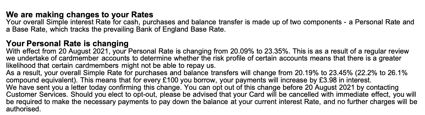jay1804 said:Deleted_User said:Just received this strange letter from amex this morning saying that they are increasing my interest rate following an "account review"