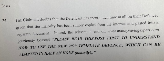 Yes it is aggressive but it's still a template. Seen it before.wobs2k said:Well, they've 'replied' to my defence and sent me their skeleton argument...they've even taken the trouble to mention this forum specifically, quoting 'relevant threads' from MSE!