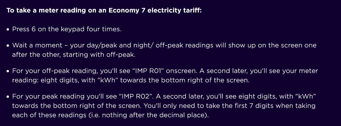 If anyone knows how I can find the IMP R02 or even if I actually have an economy 7 meter, which I've been told I do, before I go back and ring EON and shell energy on Monday. Thanks in advance.