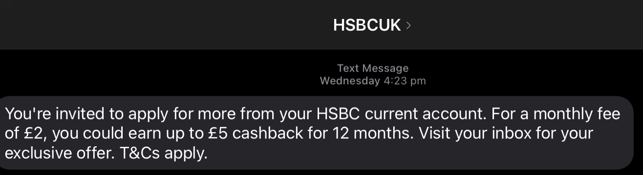 GalacticaActual said:If you have a HSBC Bank Account or Advance Current Account, keep an eye out for an email inviting you to join and earn up to £5 cashback each month for a £2 monthly fee.