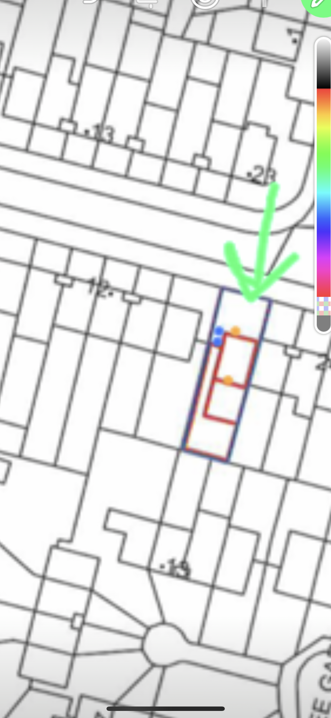 Green arrow is front of estate 🏡.