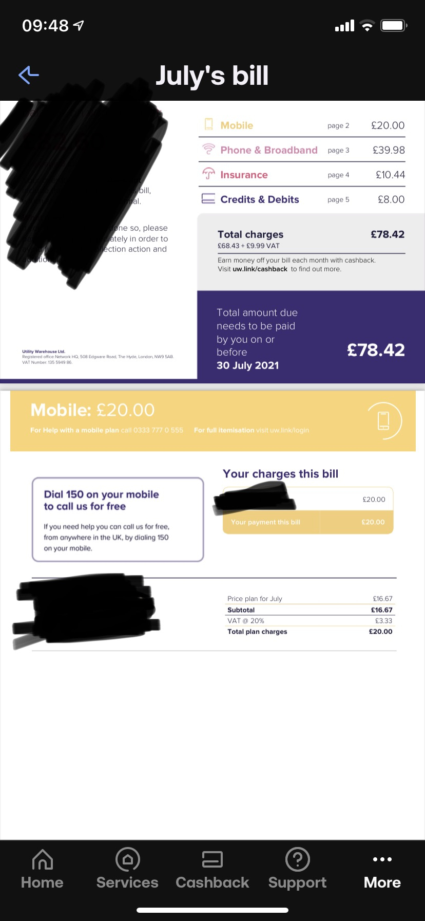 UW give me broken down bills when confirming how much direct debit they’re going to take from me.