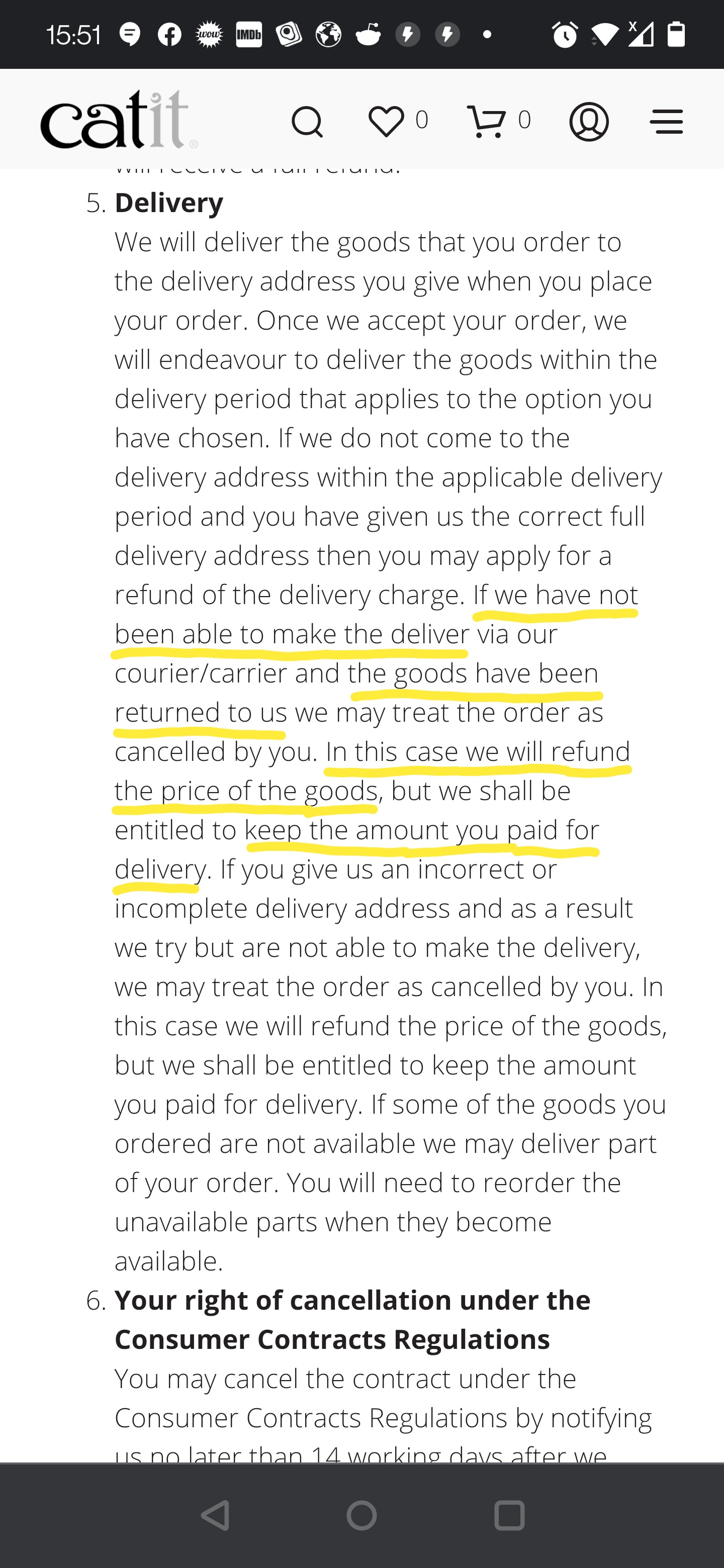 So I cancelled the order and was told that I would get the full price of the products I ordered refunded, but that they are entitled to keep the price I paid for delivery. It also clearly states all of this in their terms and conditions. However the delivery was free, so by deducting the price of their standard delivery I am not getting the full price of the products I ordered which goes against their own terms and conditions.
