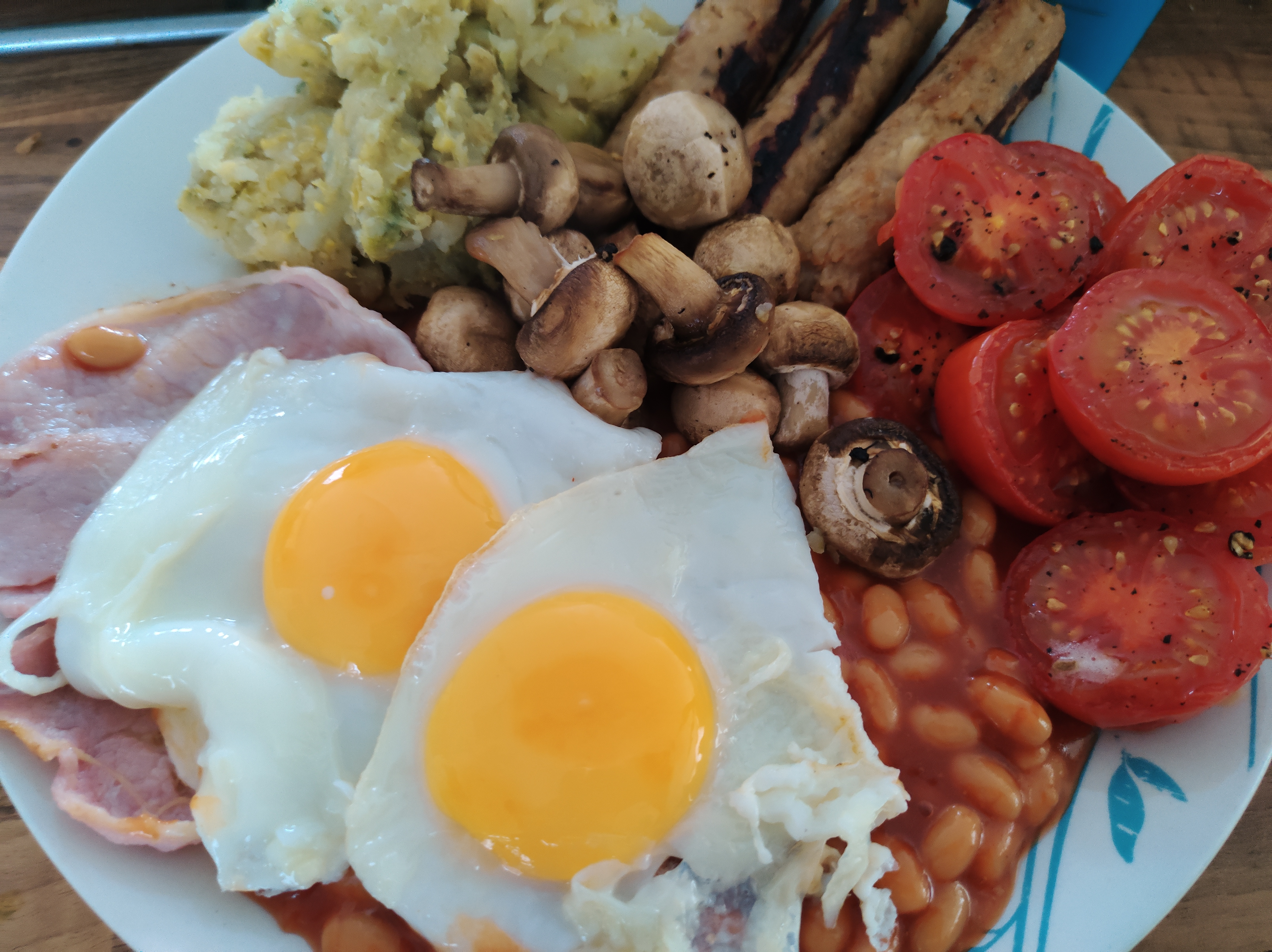 D- Austrian ham hash (F,P,S) topped with HEA2 cheese with cauli, broccoli, cabbages (S)