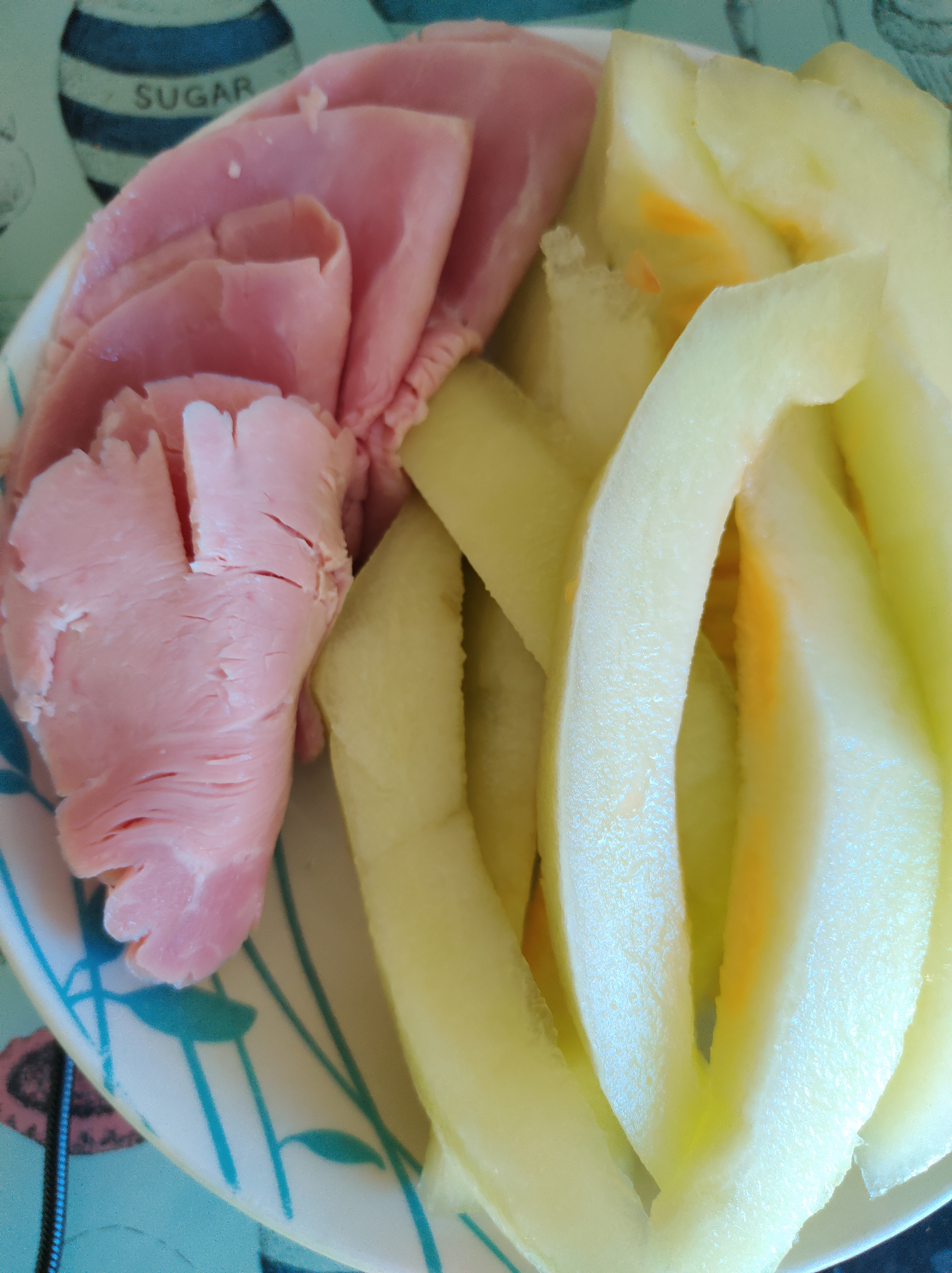 Breakfast was ham and melon