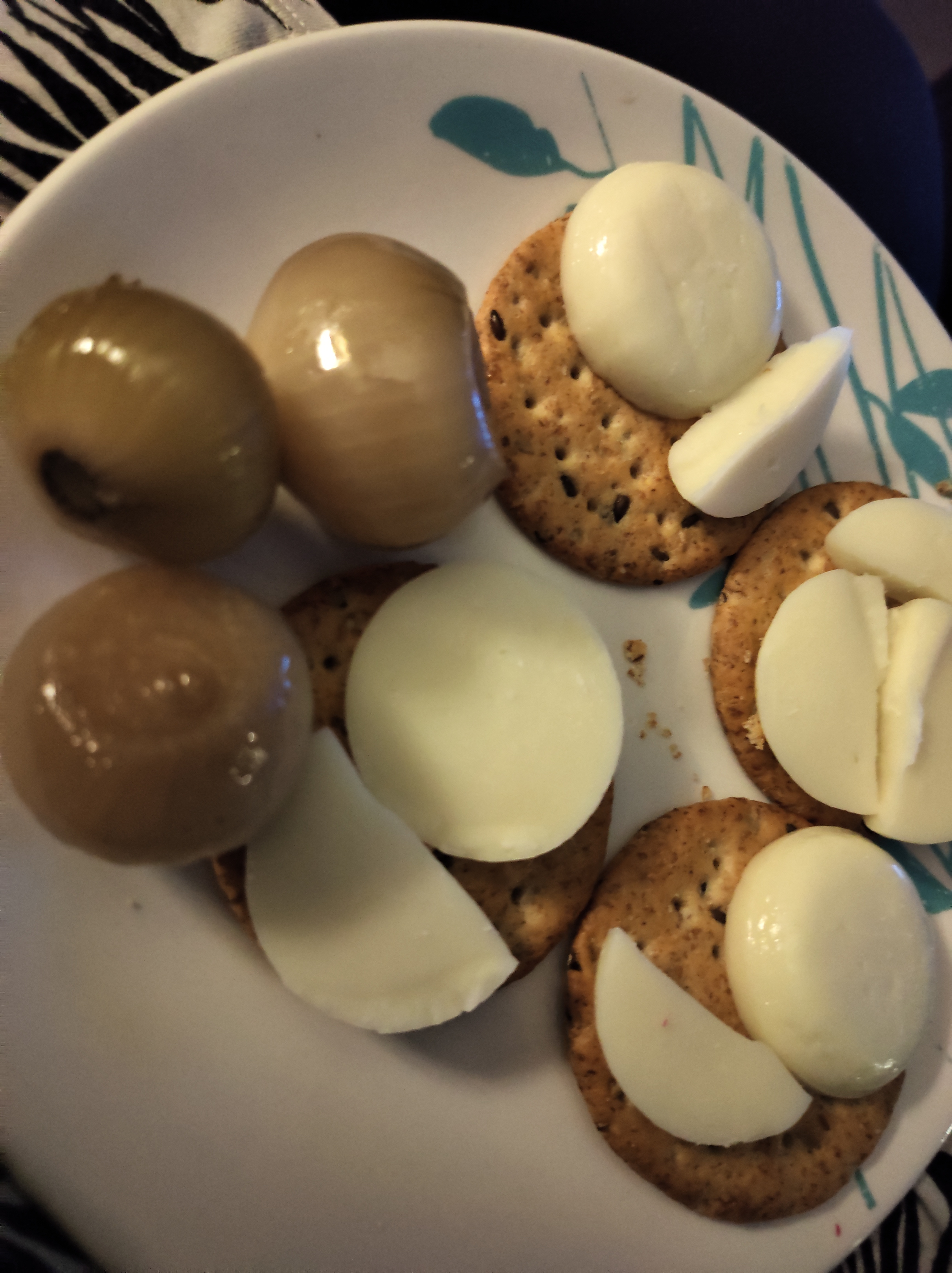 Hungry 😱 so just had crackers 4 syns, 2nd hexa 3 baby bel light, pickled onions