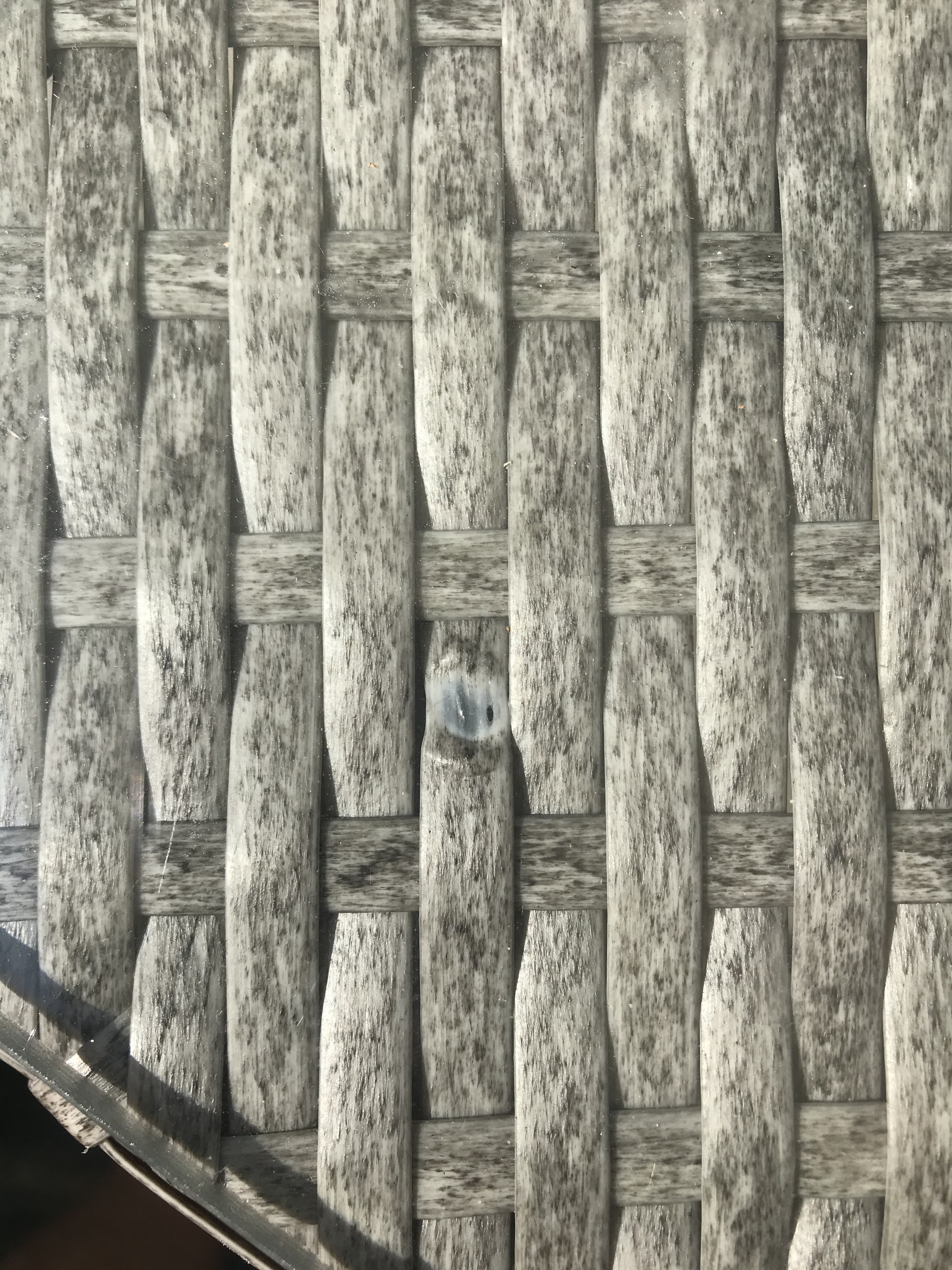 Here is the damage from a few weeks ago . There are now 2 holes and chairs are sagging in the heat.