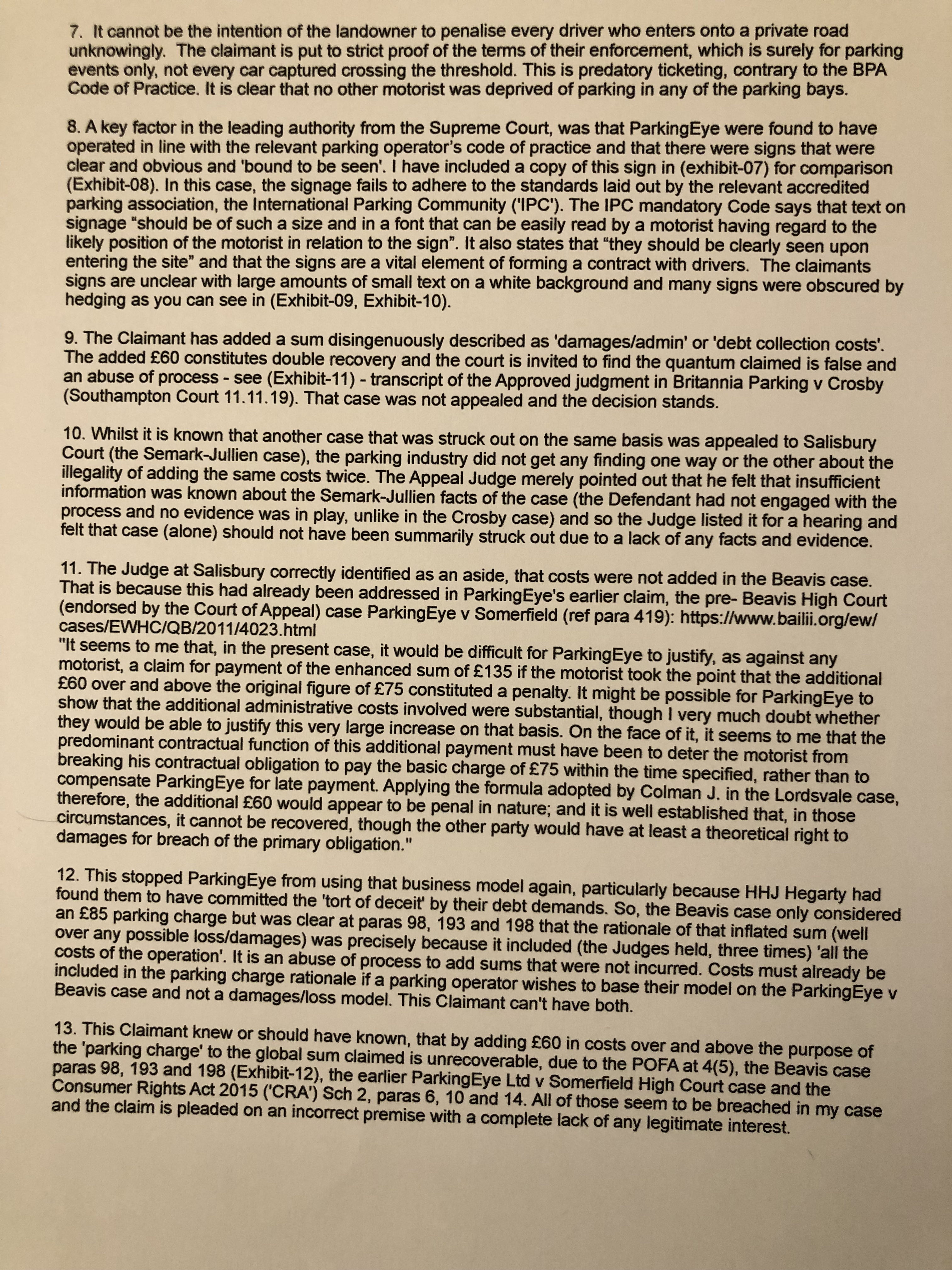 And the Crosby case means very little since the Semark-Jullien appeal. The better recent example WS, that include better exhibit case law, are those by @jrhys and @Nosy.PRIVATE 'PCN'? DON'T PAY BUT DON'T IGNORE IT (except N.Ireland).