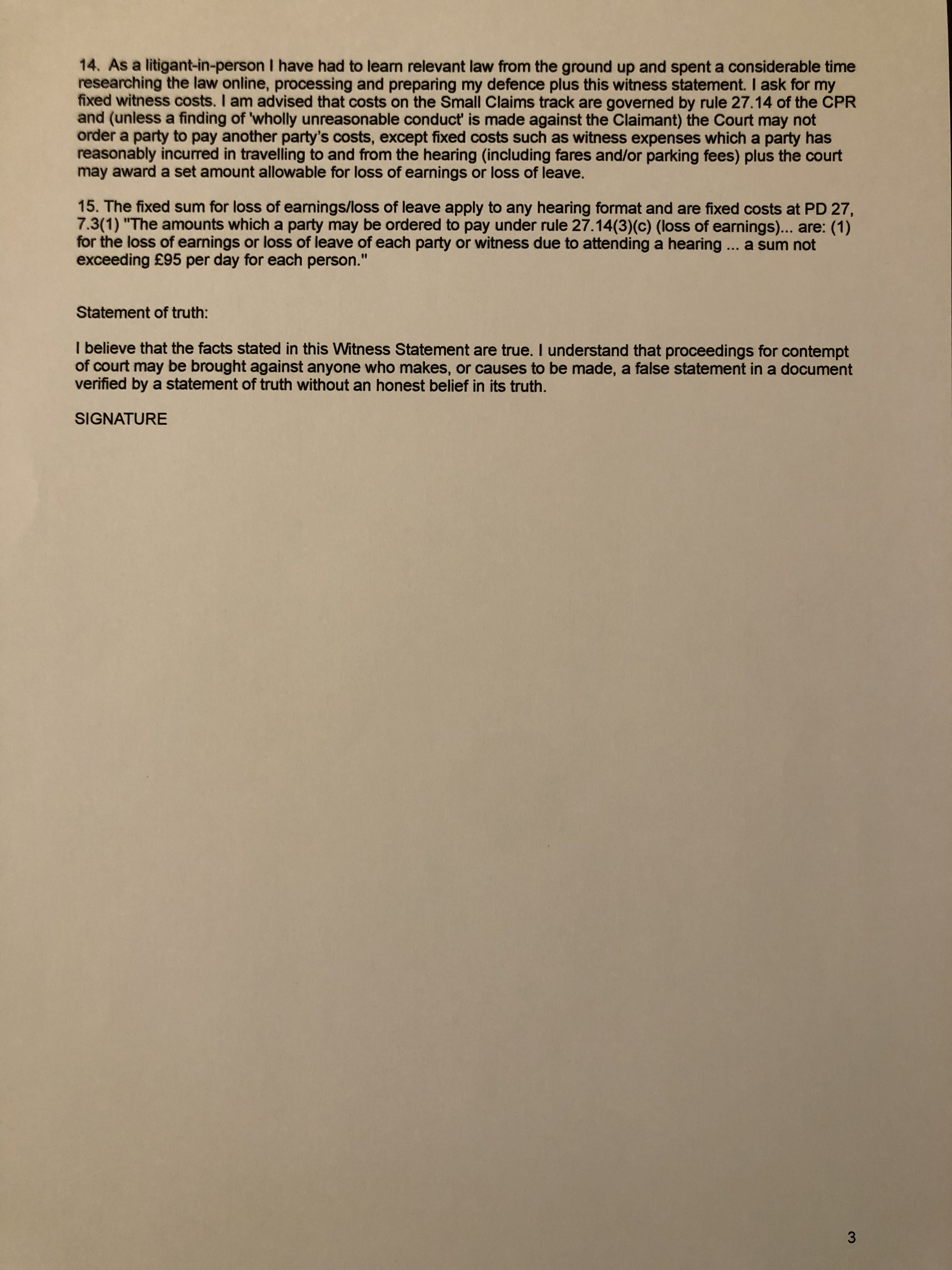 Is this witness statement ok. Need to file by 19 November.