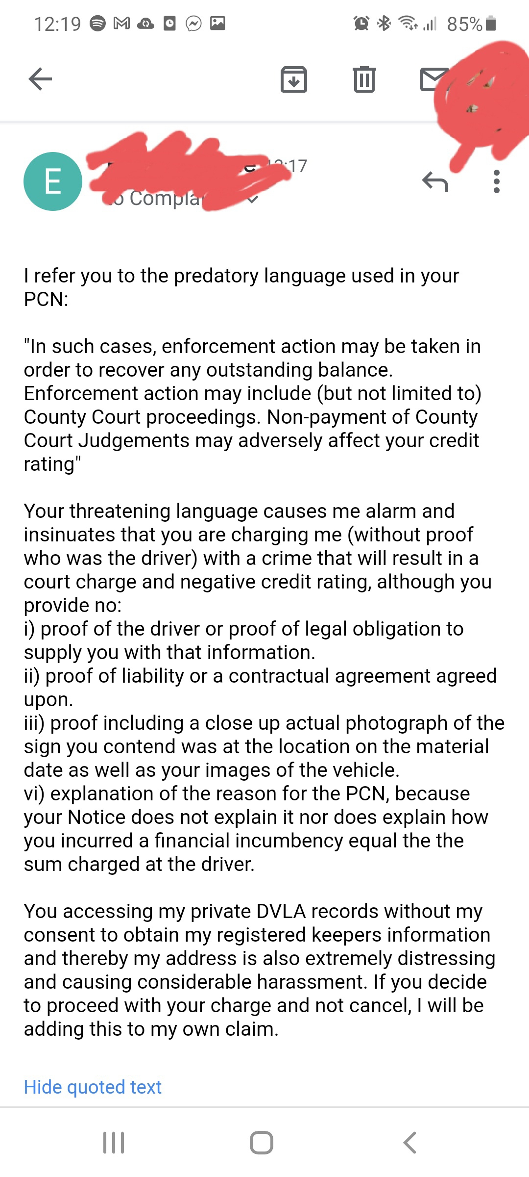OK, so now appeal as keeper. Bl00dy rude, aren't they? Horrific industry when you come across a rogue.PRIVATE 'PCN'? DON'T PAY BUT DON'T IGNORE IT (except N.Ireland).