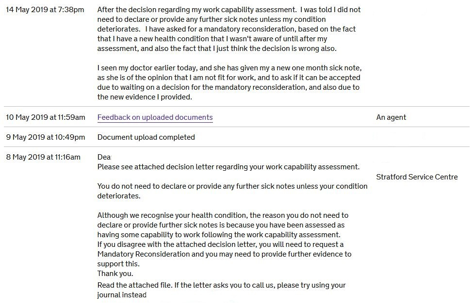 That said, if she was assessed as Fit for Work then submitting fit notes until you get the correct decision is indeed necessary.After she was declared fit for work, Universal Credit said she had to declare a new condition, for them to even do a mandatory reconsideration.