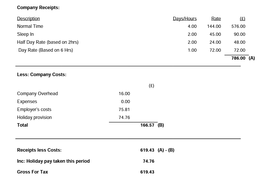 In order to exist the umbrella company have to cover their costs and profits - that will be the fixed fee of £16 per week. That is pretty much the market rate for the service, even towards the lower end.keplpies said:Can anybody explain to me what 'employers costs' (75 pounds ) and 'company overhead' (16pounds) involve? Im working long hours, under difficult circumstances in social care and this deduction is starting to grate. TIA