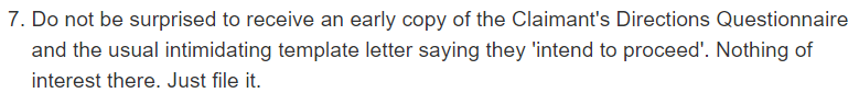 Just a quick update. I received a directions questionnaire last week from DCB legal.