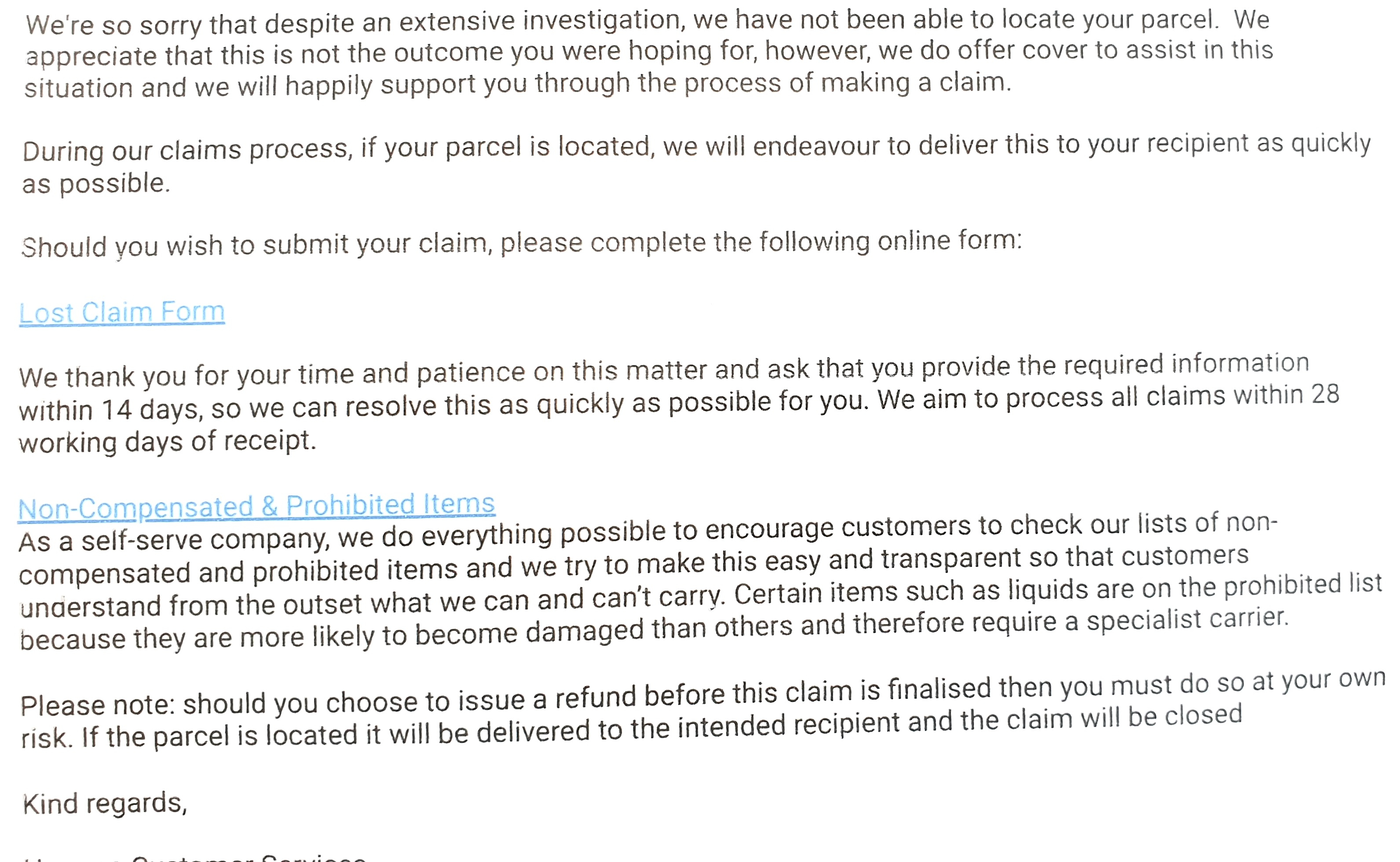 They say to me after my complaint asking them for a signature, or these days a photo and all they replied to me was a stock email (see pic) totally not understanding my question