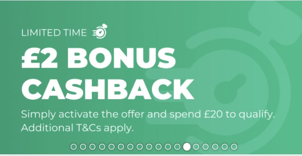 £2 bonus cashback on *£20* spend at TCB today. Less generous than usual and hidden on the 5th? Page of the banner. Remember to activate the offer before spending