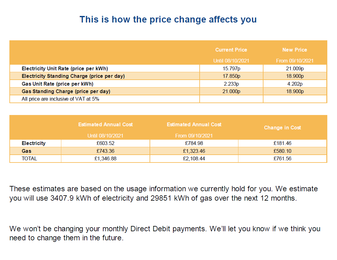 You cannot look at the size of the increase as a percentage, and complain it is greater than what Ofgem cap is.