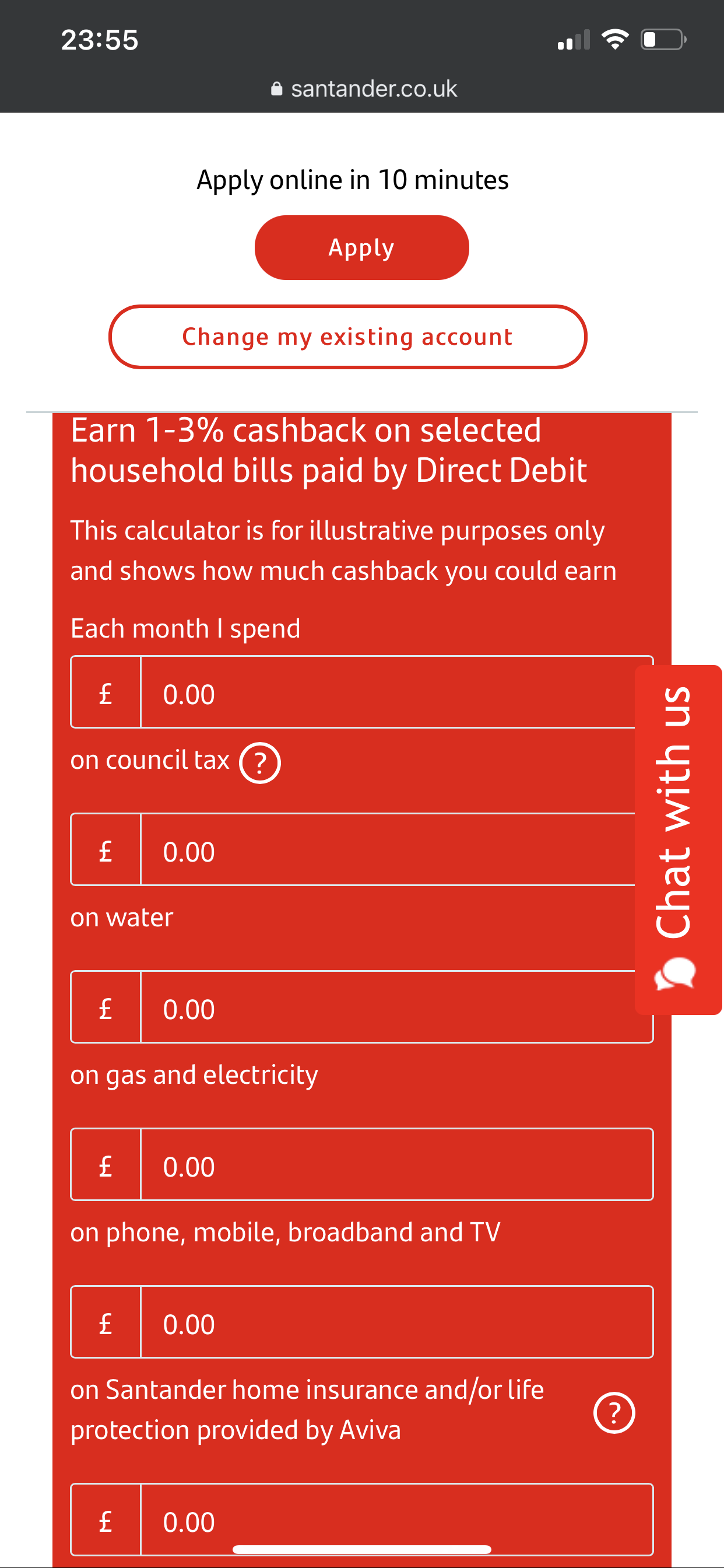 How much cashback you get depends on your bills. There‘s a calculator on the Santander website, in the FAQ section for the 123 Lite.