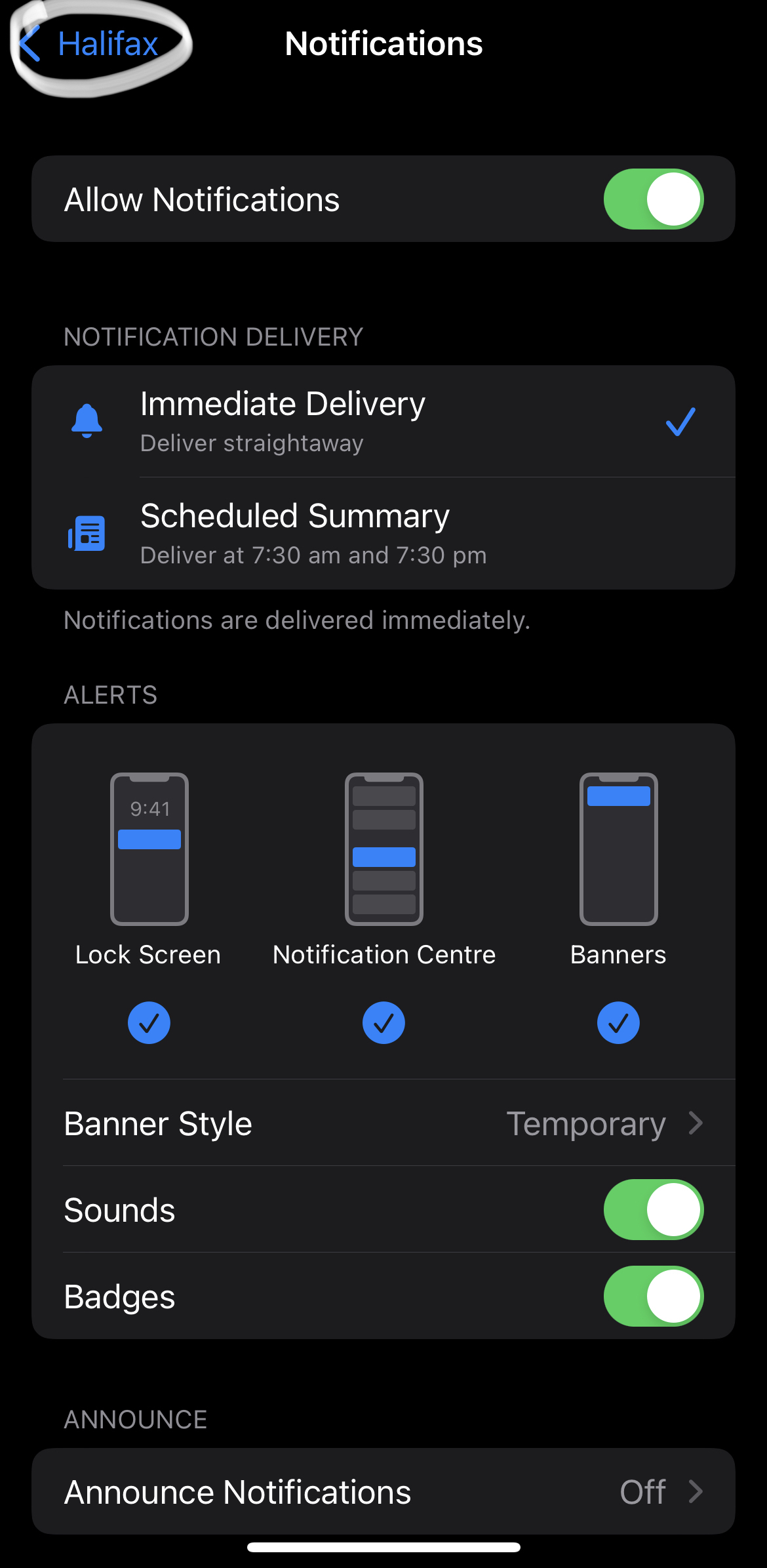 Halifax App Notifications