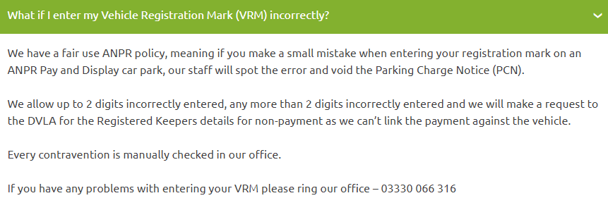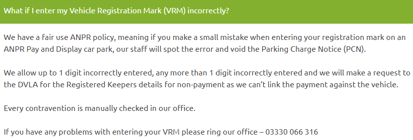 http://web.archive.org/web/20200811163624/https://hx-pcn.com/manage-my-pcn/faqs/We allow up to 2 digits incorrectly entered, any more than 2 digits incorrectly entered and we will make a request to the DVLA for the Registered Keepers details for non-payment as we can’t link the payment against the vehicle.5 -