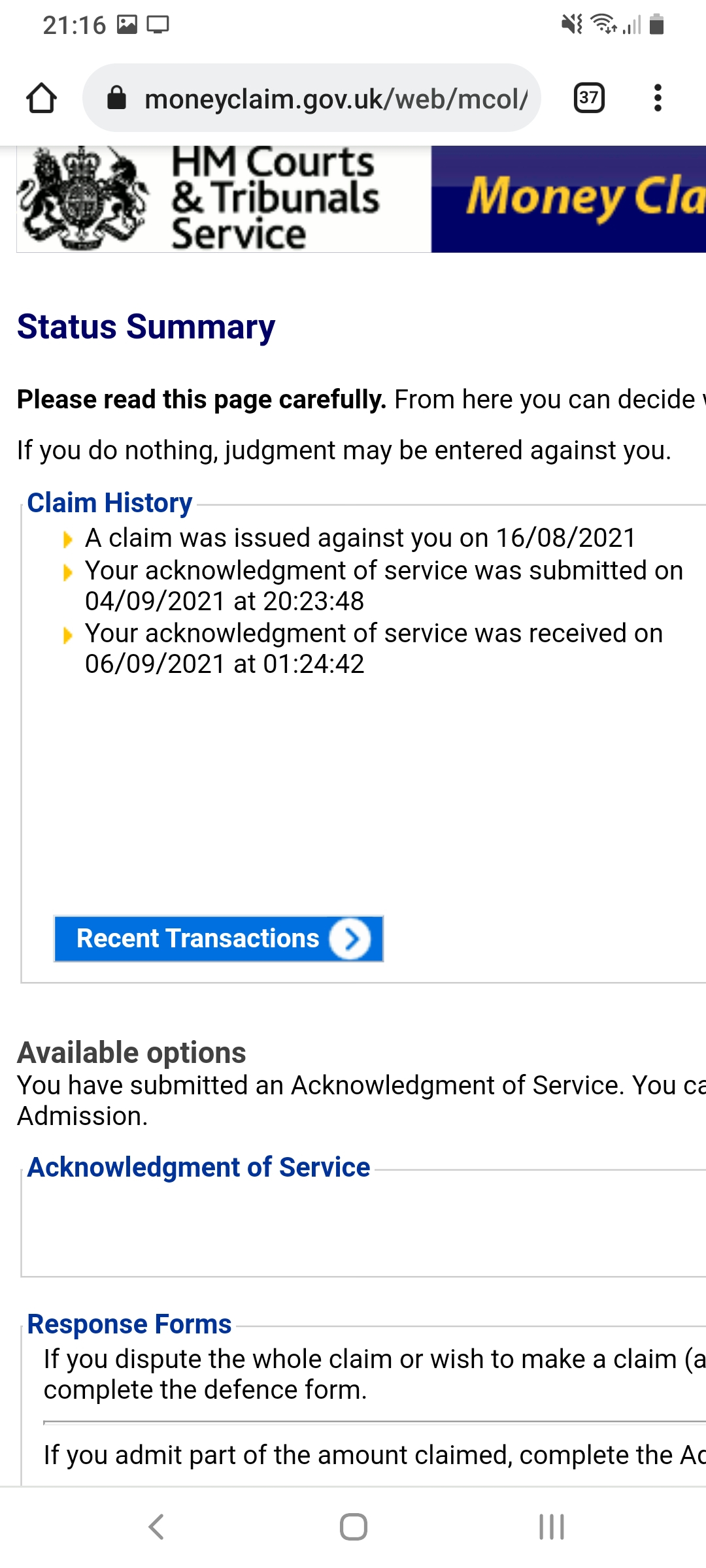 Do not try and file a Defence via the MoneyClaimOnline website. Once an Acknowledgment of Service has been filed, the MCOL website should be treated as 'read only'.2 -