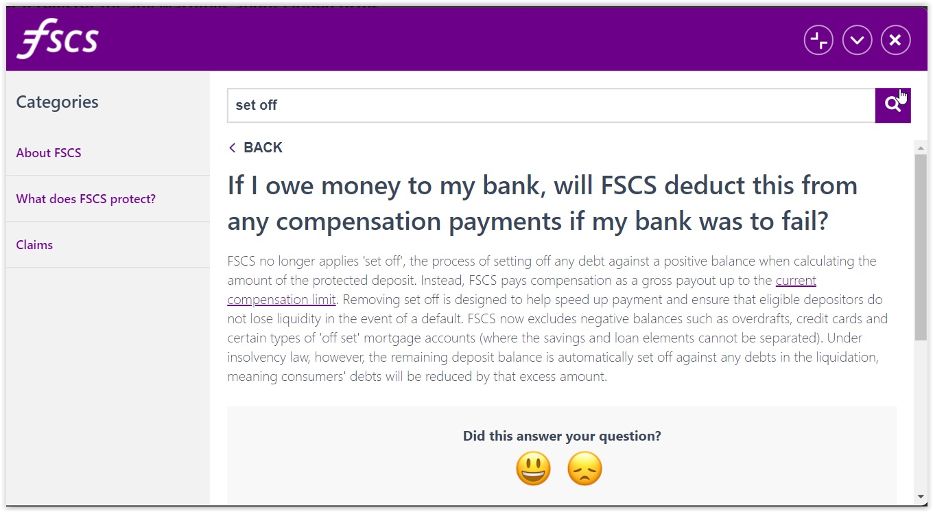 We concluded that while the bank itself has set off rights written into its T&Cs for any claim against us, it wasn't clear that it would work the other way round. So while we had the opportunity to make a lot more 'free' money, we limited ourselves to just taking 150k out of the mortgage to invest in Santander's bonds (joint account, was a 75k FSCS limit at the time).Would however be interested to know if there are any real world test cases here...0 -