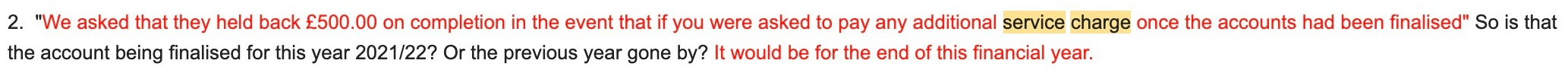 Normally, your purchase contract would have a clause saying that you could reclaim this service charge adjustment from the seller. So, for example,- 1. Was your solicitor saying that the seller was refusing to have that clause in the contract? And you only agreed to that because of confusion over dates?