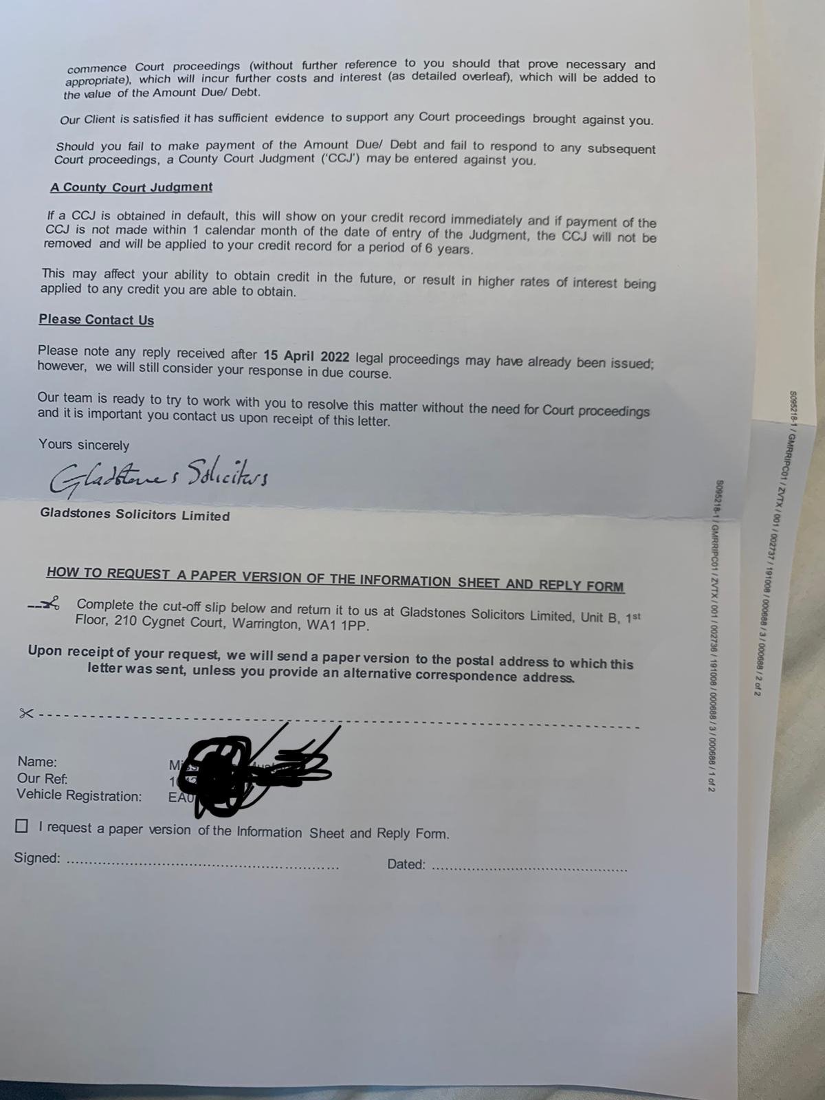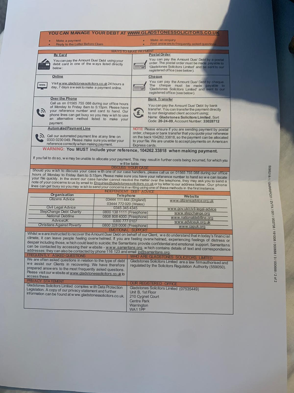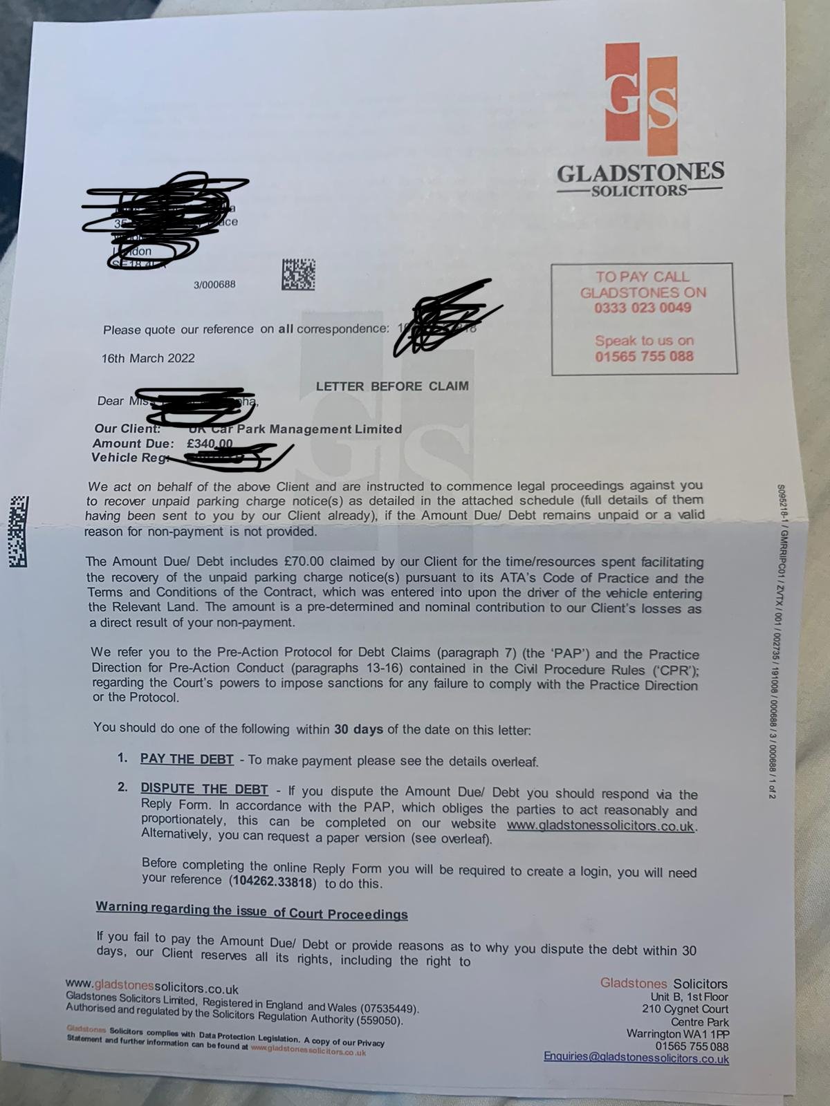 Thank you for all your continuous support, while I await the hearing date for the above case. I received another LETTER BEFORE CLAIM from Gladstones. This is regarding another vehicle entirely.