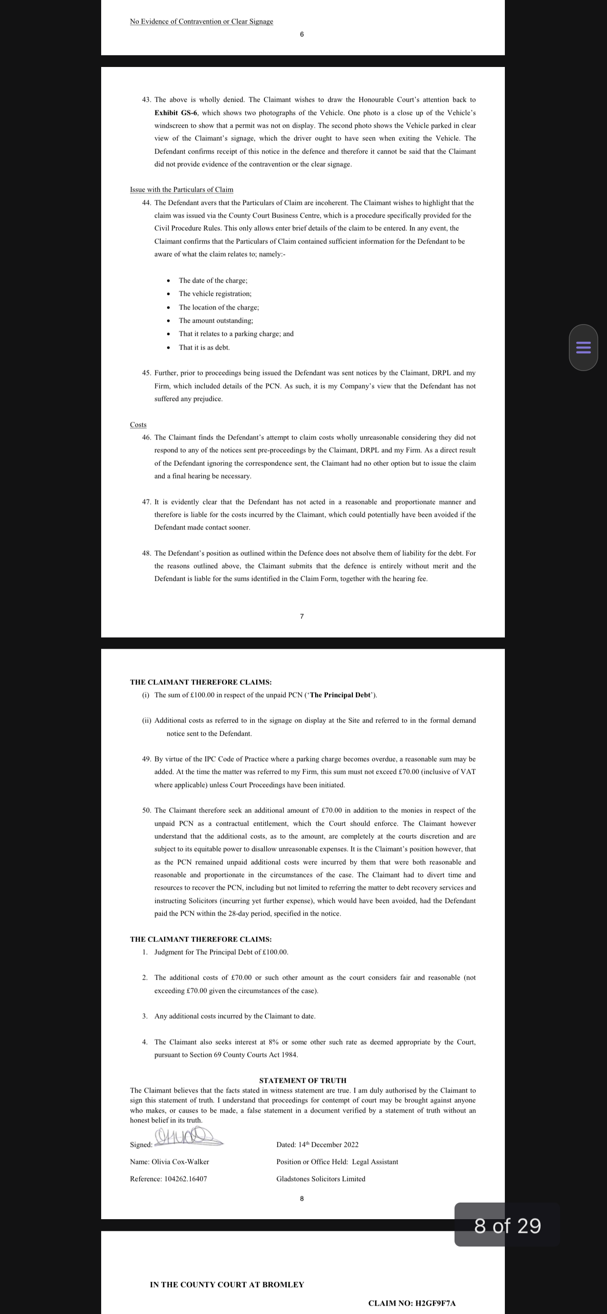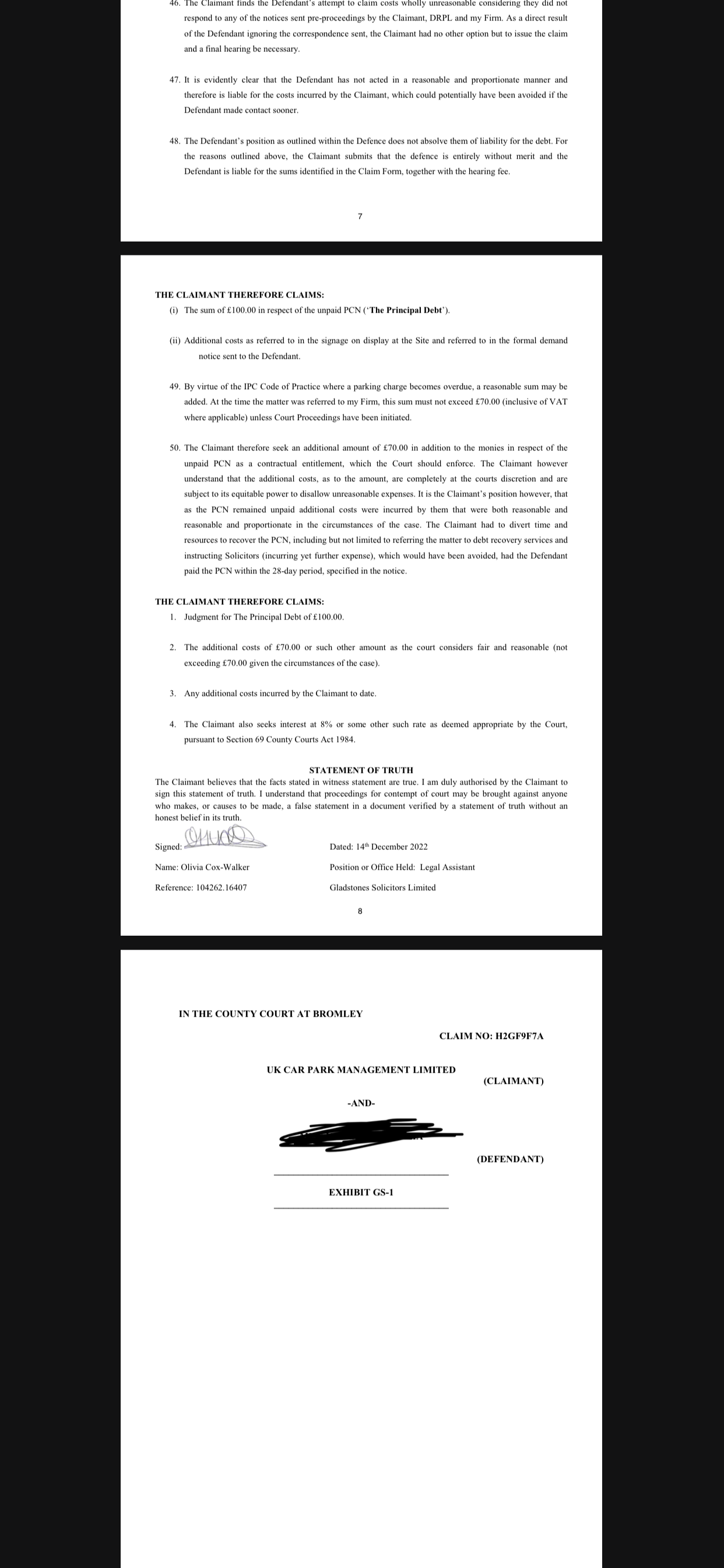 You MUST do a WS and exhibits or at the moment, the only party who has provided any evidence is the parking firm. Guess what will happen if you let this stand with no WS bundle from you?