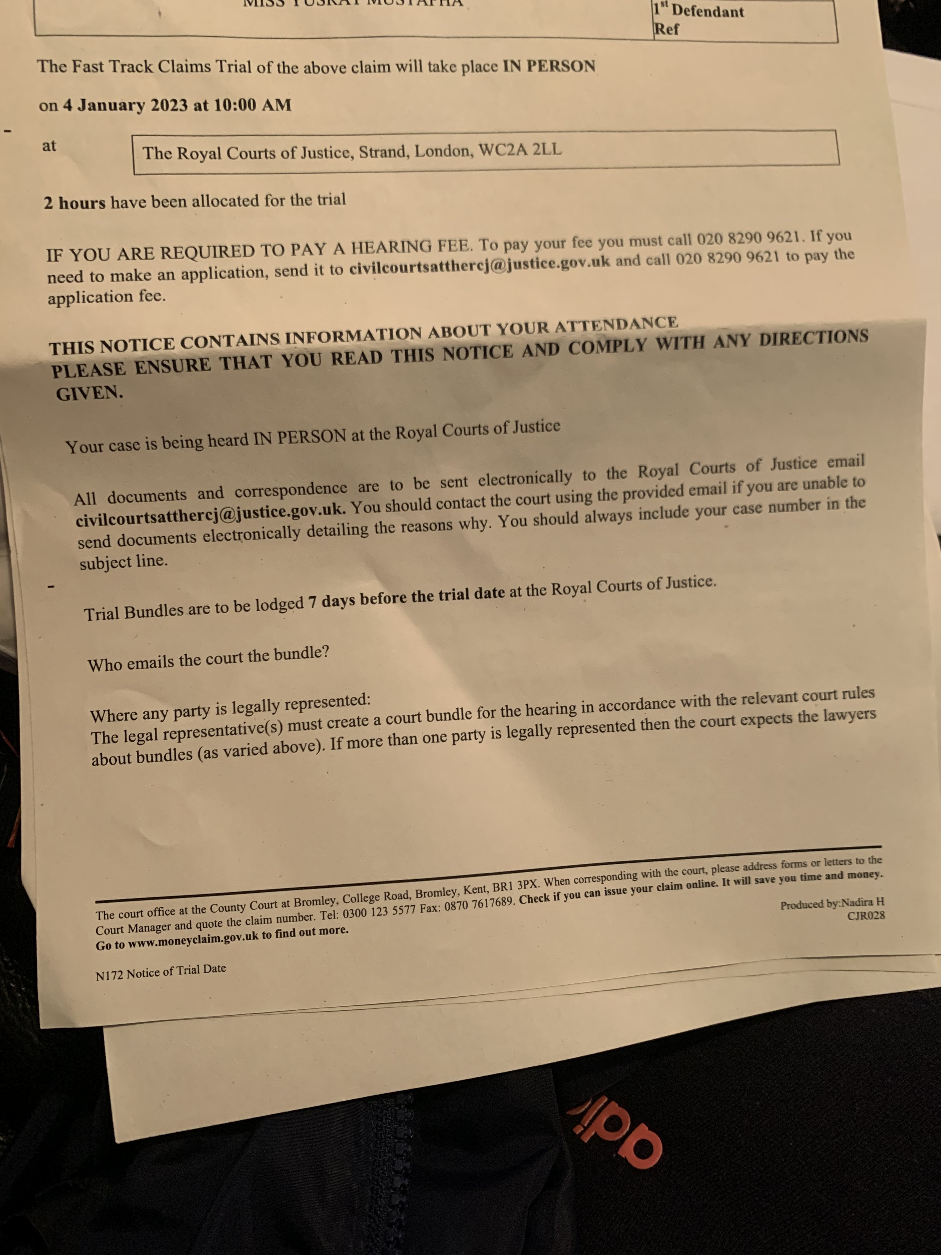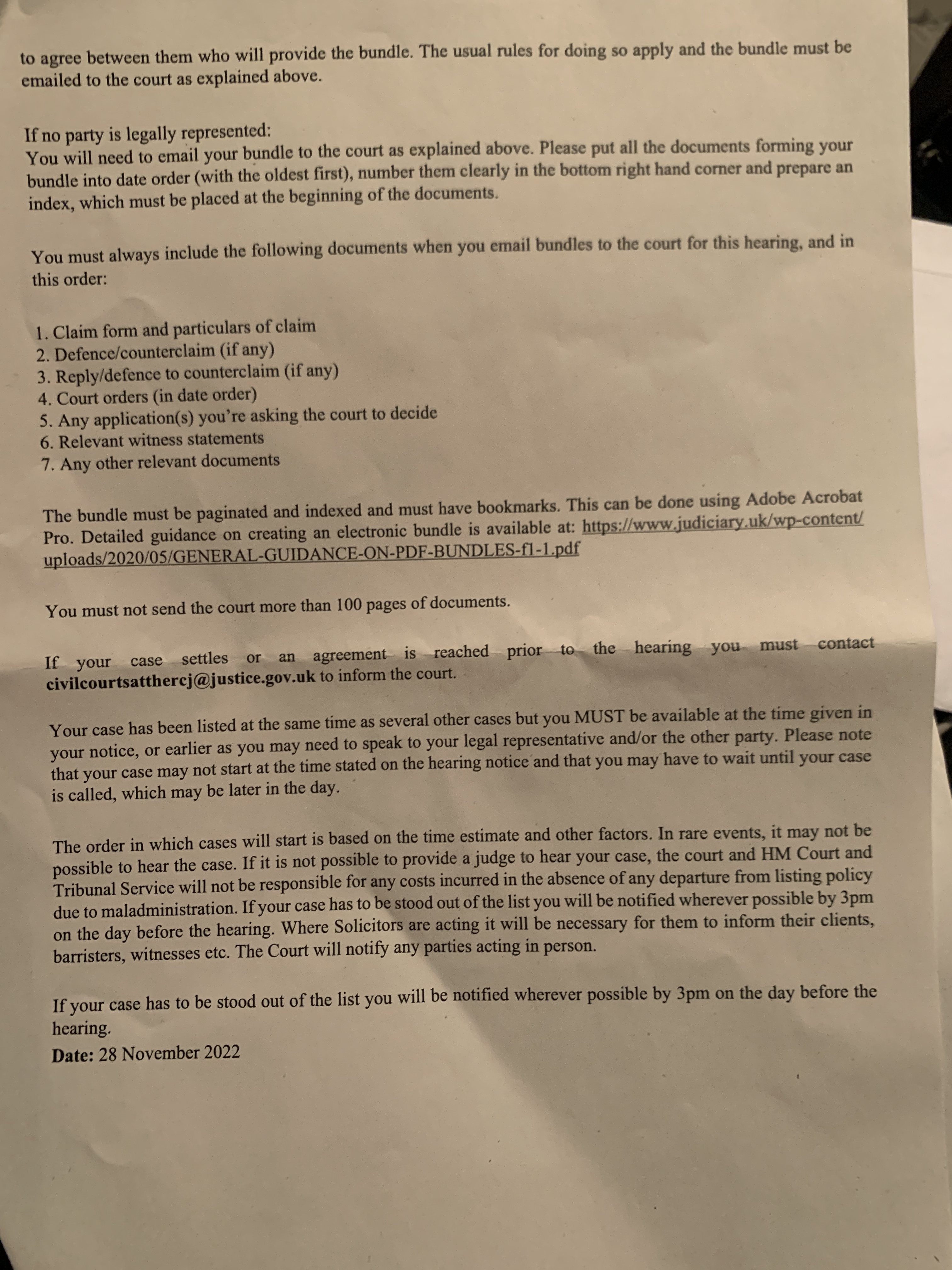 i am back today because the court date has been fixed for the 4th of January. I will be attending in person, Gladstone just emailed me their witness statement, they will not be attending. I need your help please.The court are asking me to send a bundle, I don’t know what that means.