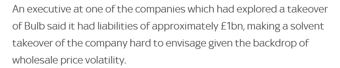 That would make it very difficult to get a smooth solvent take-over agreed, but depending upon the details of those liabilities it wouldn't be the first time a 'pre-pack' administration was arranged...Probably going to be a pre-emptive administration application by Ofgam though I'd guess, using their rights, and then interim management through the winter.