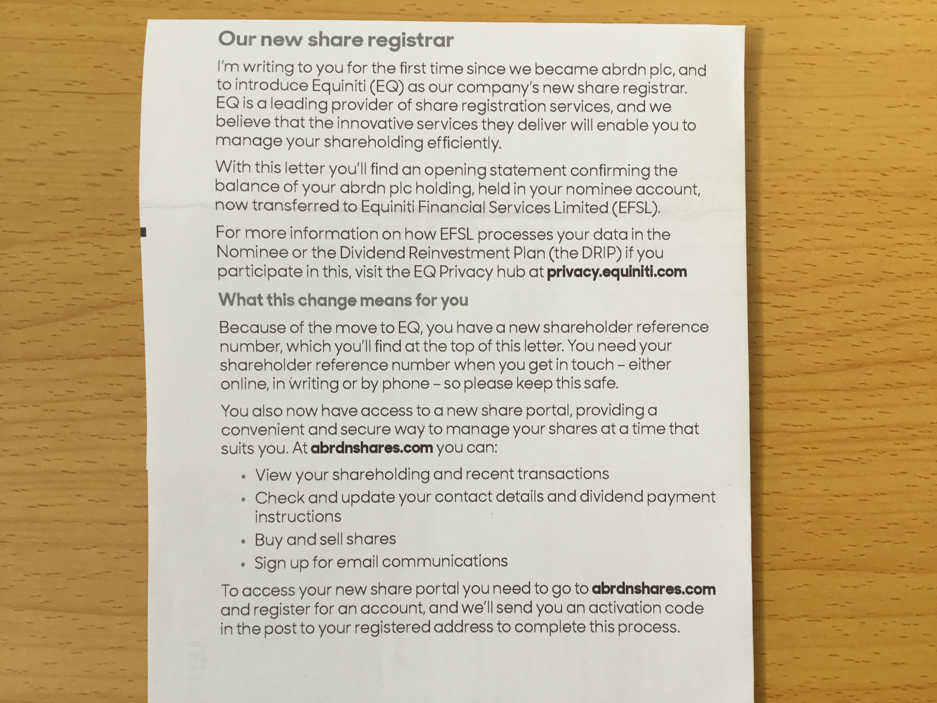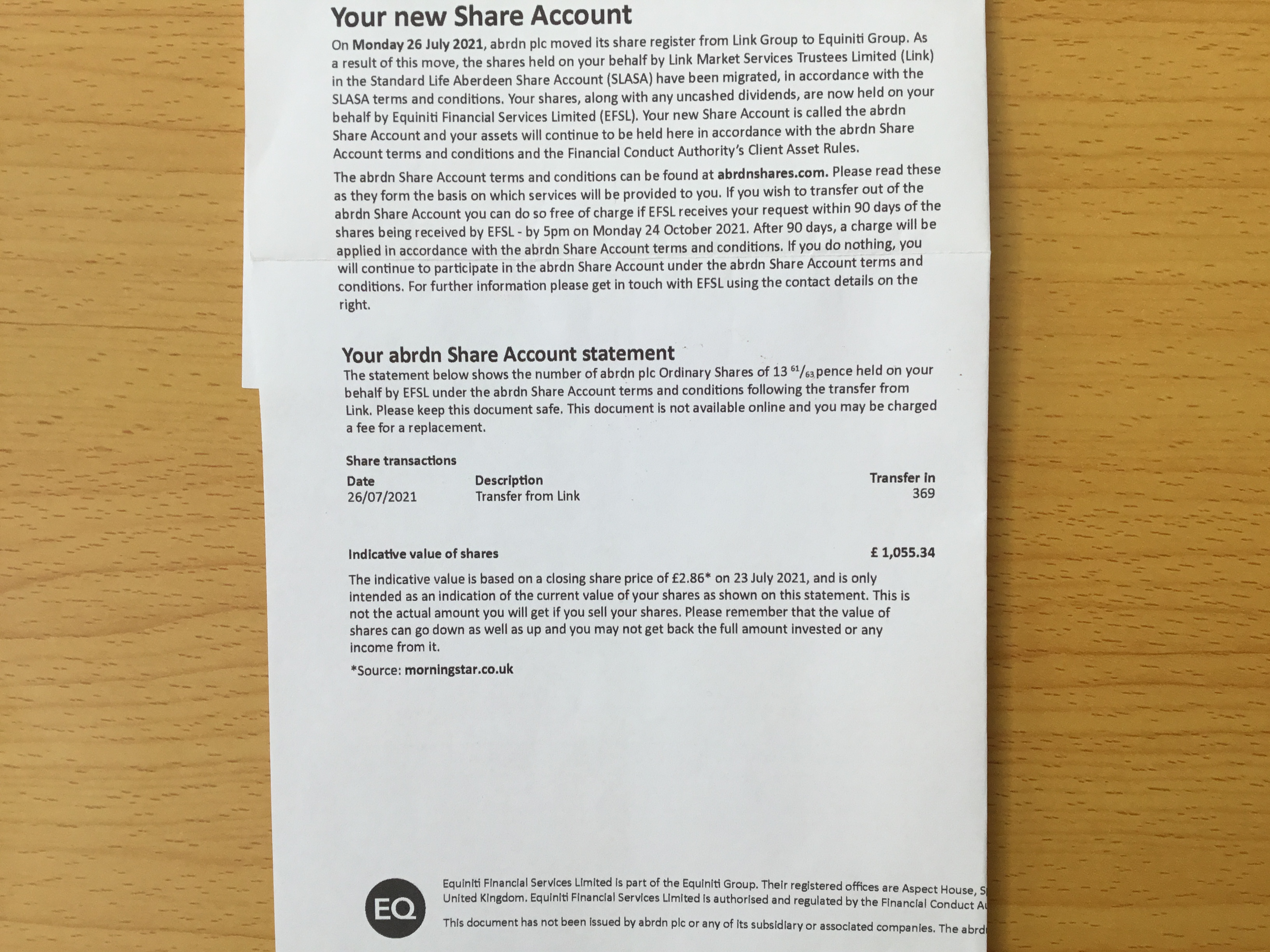 My wife and I have received communication from abrdn of our new share account options, to buy/sell/transfer, we have no need for the cash at the moment, shares together total 730 we have held shares from Demutualisation, we are now wondering should we transfer shares to another platform or leave the shares where they are ( Equiniti ). We have never dabbled in shares before, only purchased index funds/trackers.