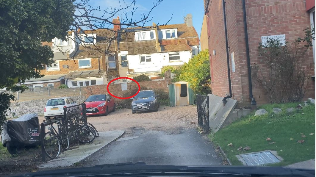 When I had parked the car the main sign at the entrance was completely hidden behind the bush(second pic), and when I visited the sight today the bush is trimmed down and sign is clearly visible-first pic (luckily I have photos from the past).