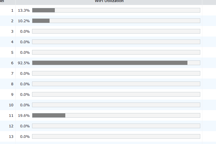 It is also worth looking at channel utilisation - in my case the channel 6 is sometimes almost saturated bandwidth wise - probably from all my smart devices on that channel, but means there is nowt left for any other device to use.