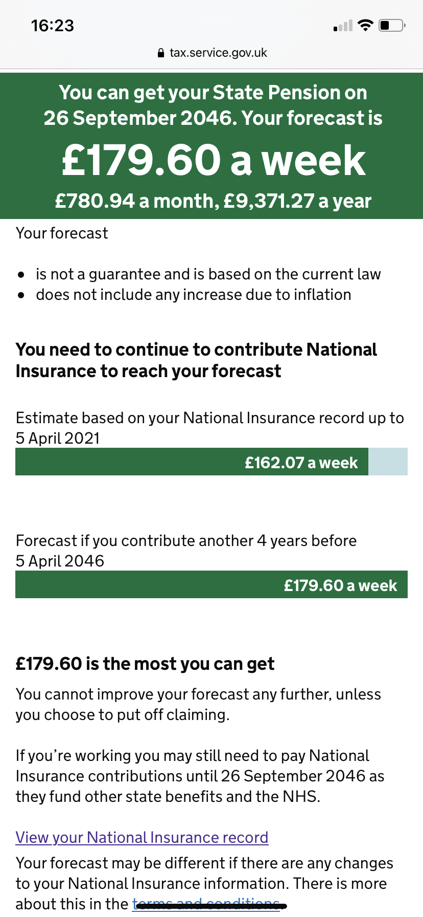 Under the system before 6 April 2016 you accrued one year of basic state pension for each full year and in addition got an earnings-related top-up. Since then it's been just one year with no earnings-related part. People had their amount calculated using both old and new rules for April 2016 and kept the higher amount. It's normal for those with a full working history who weren't contracted out of the earnings-related part to need less than 35 years because of the earnings-related but. Earnings-related top-up doesn't add more above roughly the higher rate income tax level of earnings. So no surprise if people with full work histories, particularly on above average wage, need far fewer than 35 years.timjim said:"Me and hubby both 43"